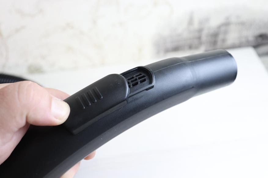 Еще одним плюсом, является наличие небольшого фиксатора для шланги-рукоятки со щеткой. Таком образом возможно в таком положении вам будет удобно хранить пылесос.