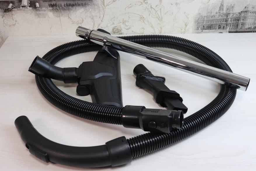 В комплект поставки входит: сам пылесос, телескопическая труба, гофрированная шланга-рукоять, основная щетка, и две дополнительные, а также инструкция. Несмотря на то, что инструкция на английском языке, благодаря иллюстрациям в ней все интуитивно понятно.