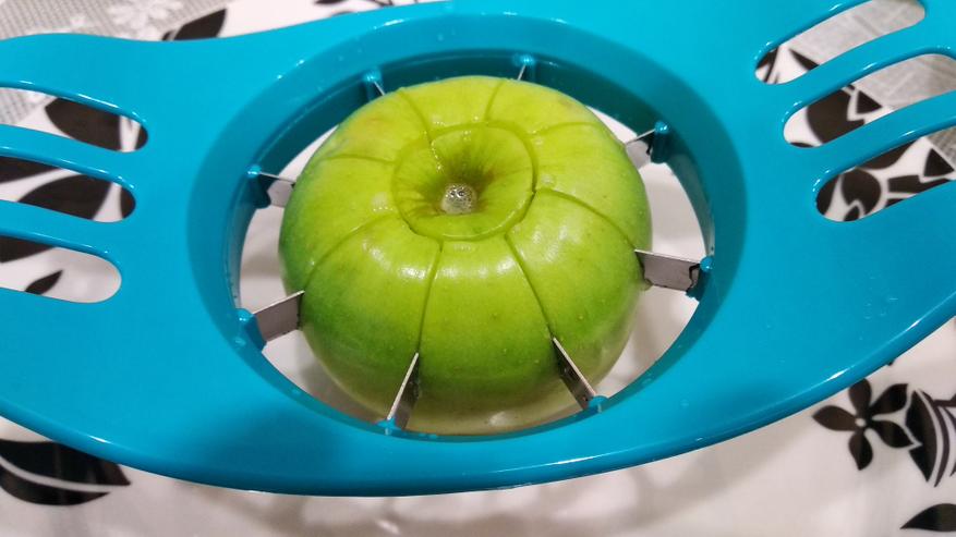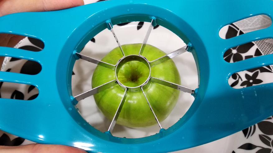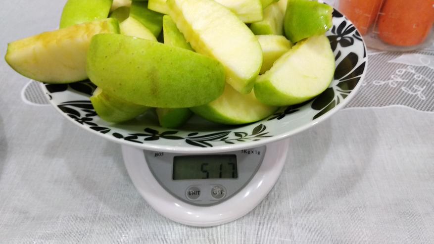 Далее готовим ингредиенты. Возьмем классическую троицу: морковь, яблоки, апельсины. Чистим, взвешиваем и начинаем работу. Кстати, нож для яблок отлично справился с задачей, оптимальный размер — среднее яблоко, у меня, например “Голден”, одинаковое с “Гренни Смит”.