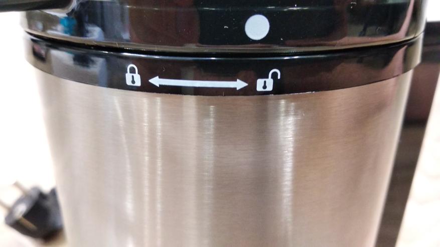 Первым делом промываем рабочую чашу, стаканы и податчик продуктов. Сборка не вызывает трудностей, так как есть пиктограммы замочков “открыто”/”закрыто”. Аккуратно стыкуем составные части и поворачиваем. Всё.