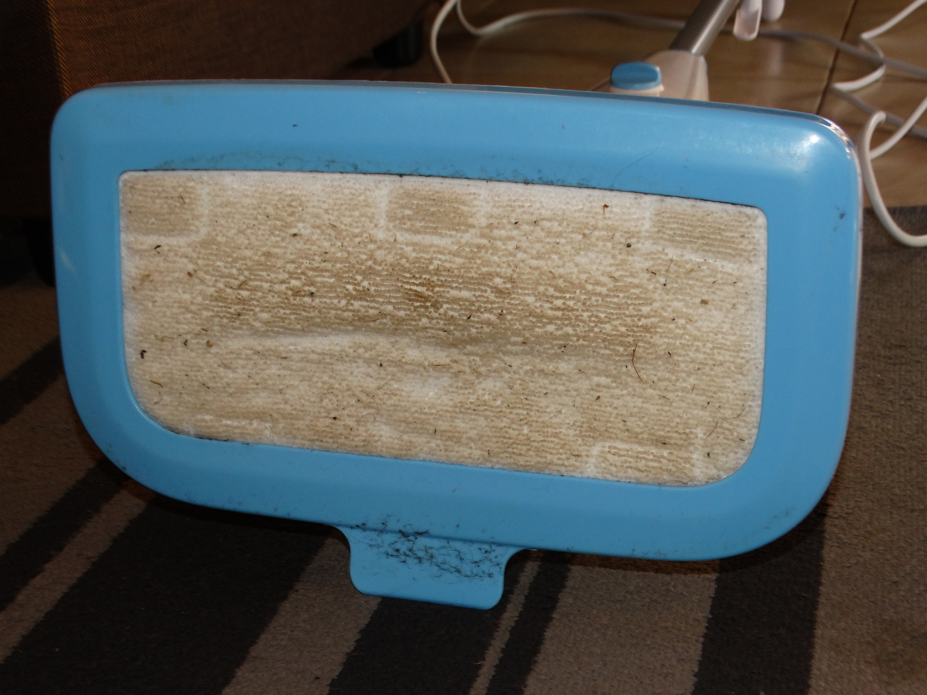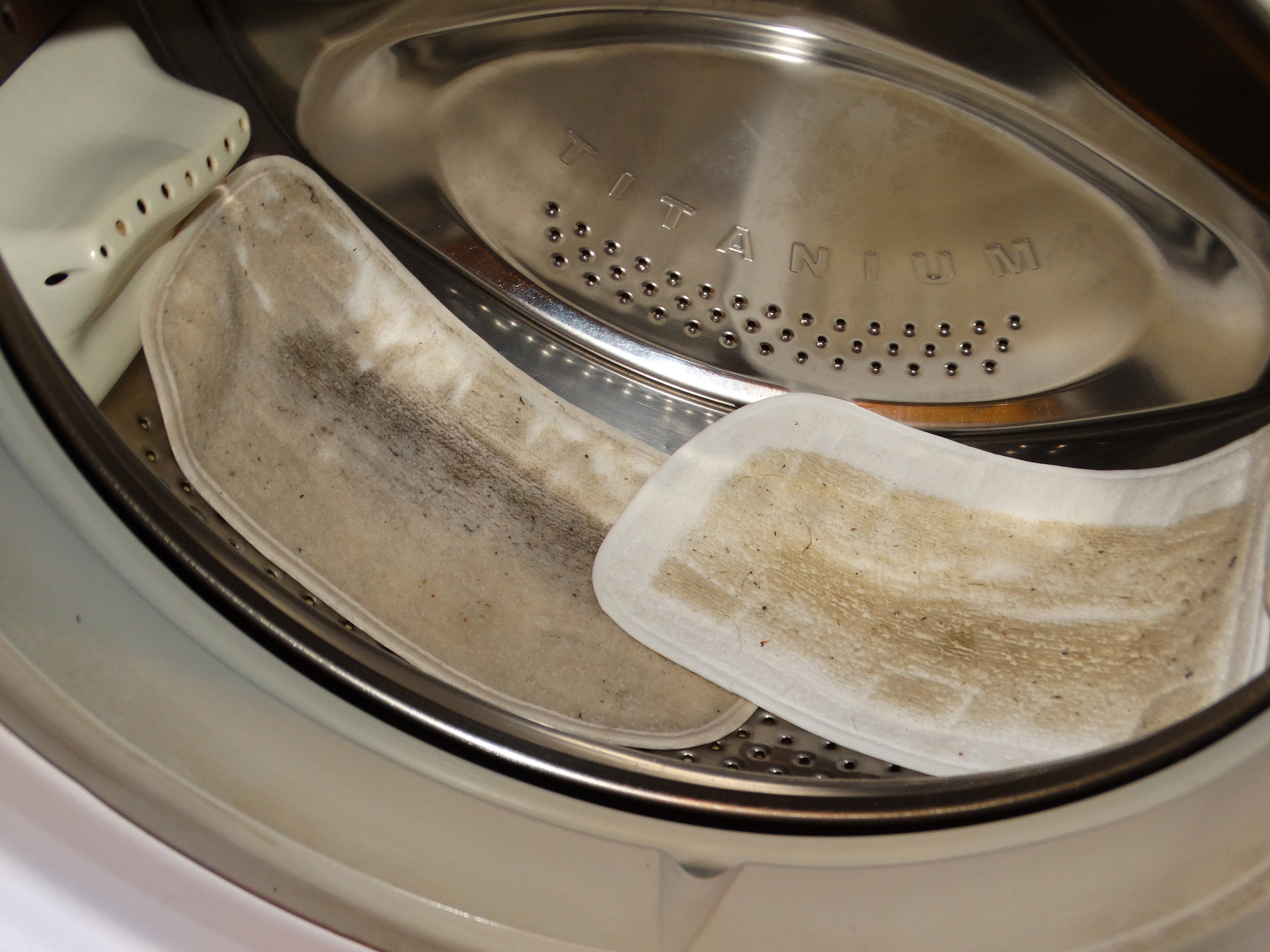 С коврами прибор, за счёт высокой температуры выходящего пара, тоже показывает свою эффективность – грязь на тряпочке видна даже при использовании специальной насадки, из-за которой тряпка в меньшей степени контактирует с покрытием.
