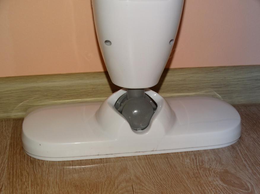 Принцип работы обозреваемой паровой швабры прост – в вертикальном положении ничего кроме нагрева не происходит, но стоит хоть немного наклонить прибор, как сразу начинается подача пара до тех пор, пока Starwind SSM5333 вновь будет стоять вертикально. Таким образом, отпадает необходимость в дополнительных кнопках, но насколько надёжен такой механизм, покажет только длительное использование.