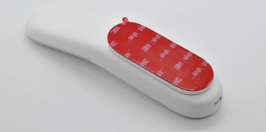 На задней части расположена зона крепления магнитного кронштейна. Магнит редкоземельный, очень цепкий, можно вешать просто к металлическим поверхностям (например на холодильник, что бы ночью до него добраться и не наступить на голодного кота в темноте). Светильник можно повесить в любом месте, там двухсторонний скотч от 3M.