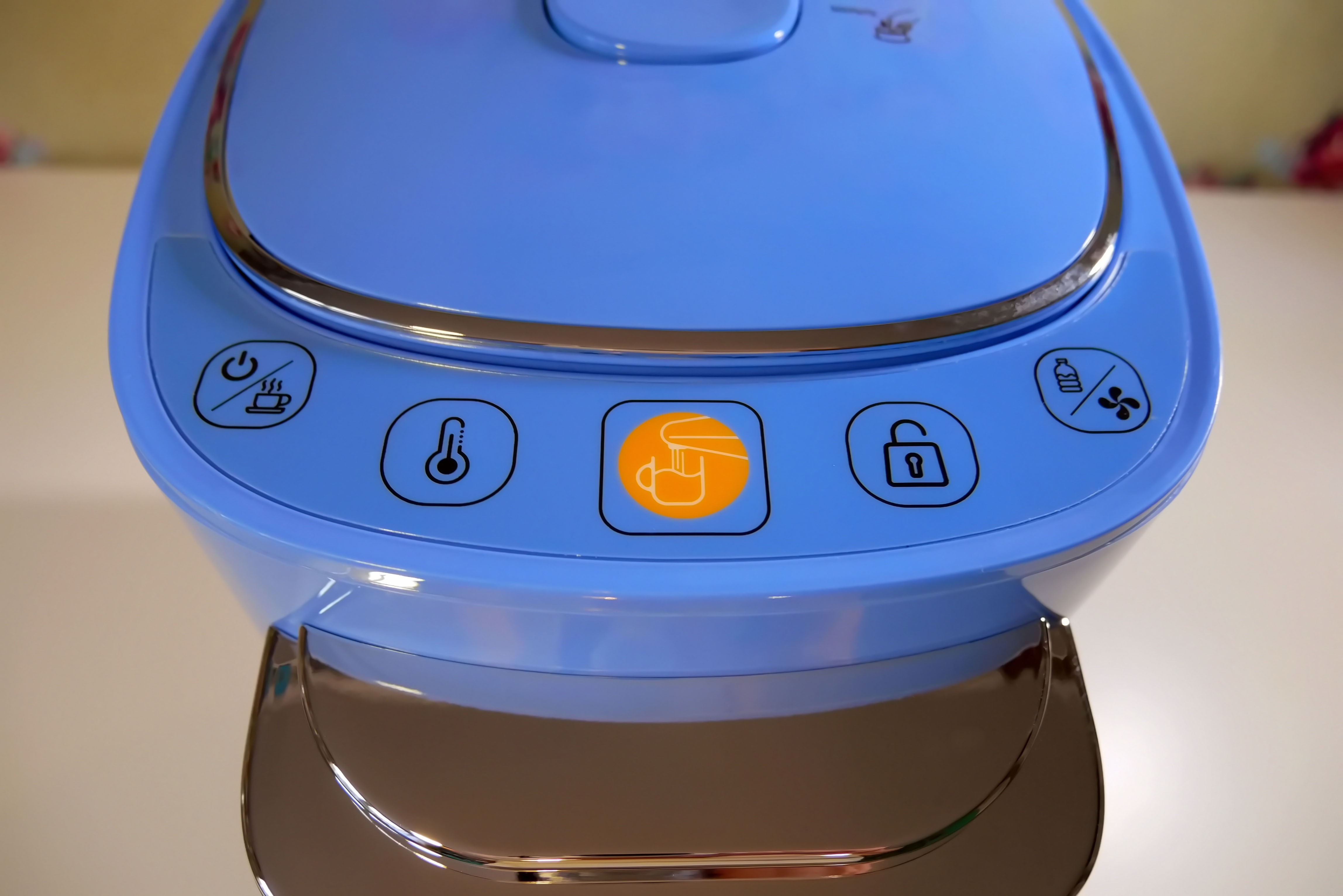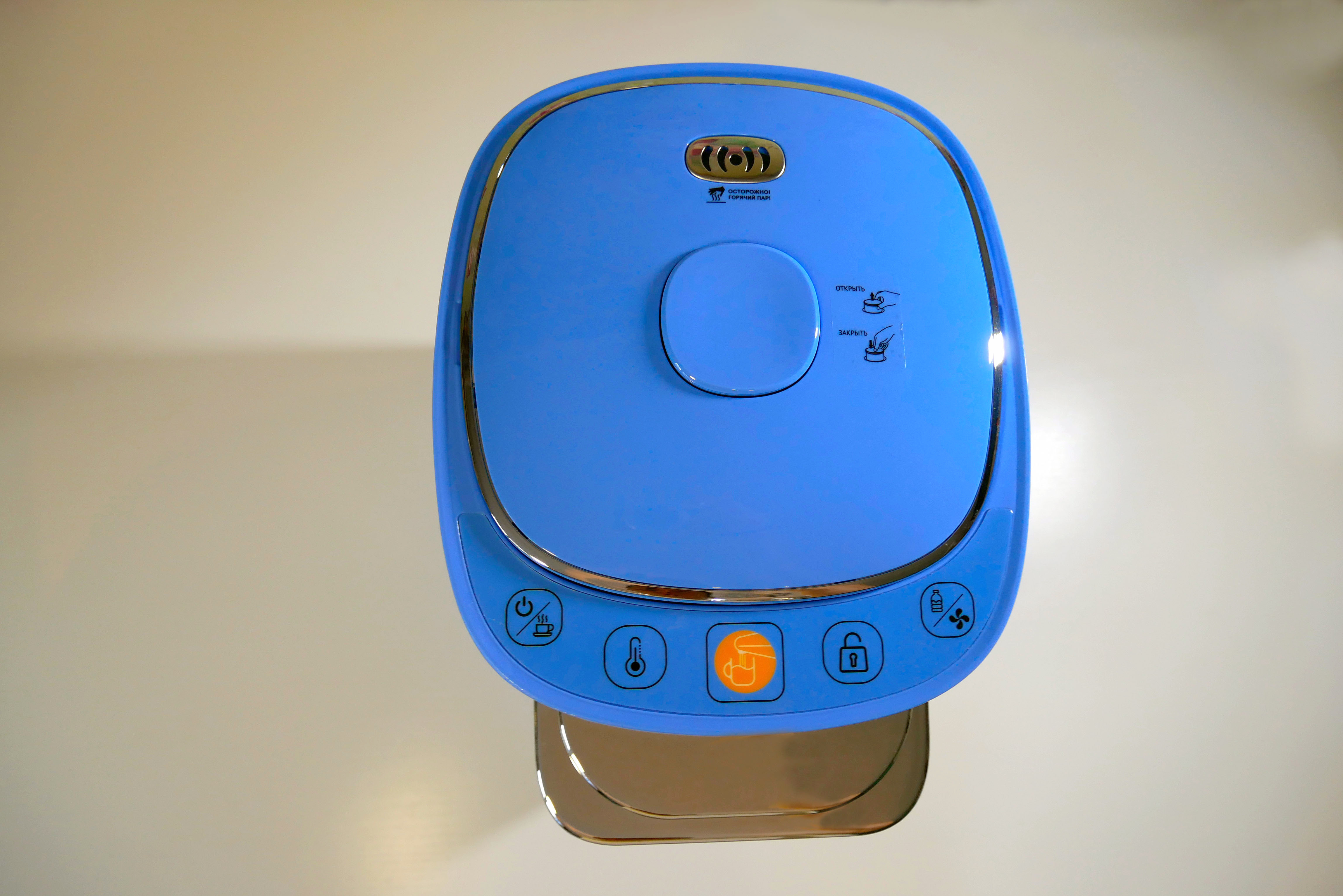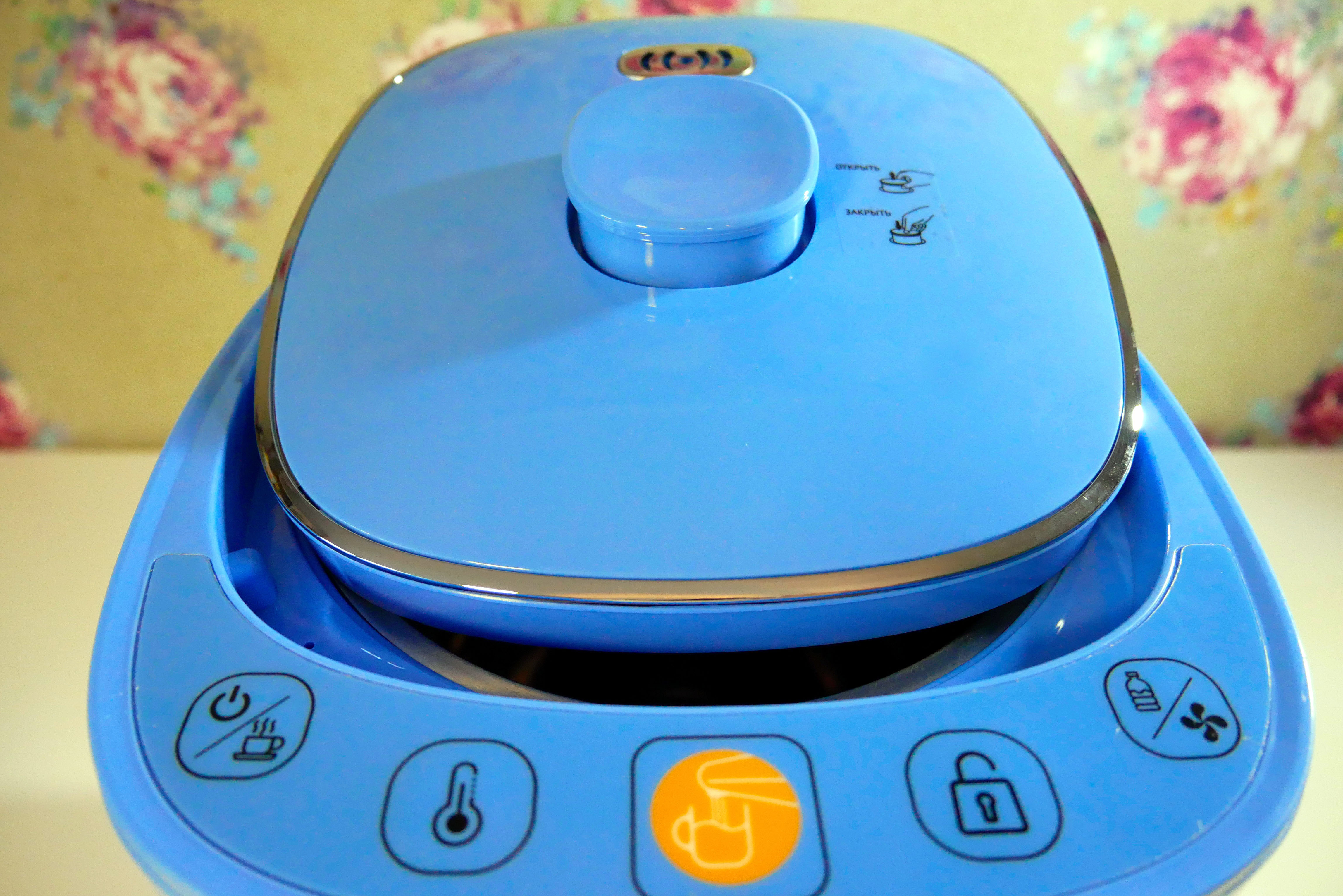 Основные органы управления сосредоточены в верхней части прибора. Это пять физических кнопок нажимного действия. Каждое нажатие на кнопку сопровождается звуковым сигналом. Данные кнопки за следующие команды: включение режима кипячения, установка заданной теплопередачи, сток воды, невозможность стока воды, активация режима охлаждения или экологичной функции. Кнопки большие, обладают небольшой подсветкой.