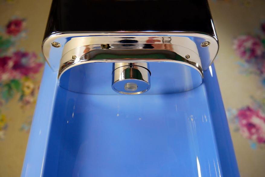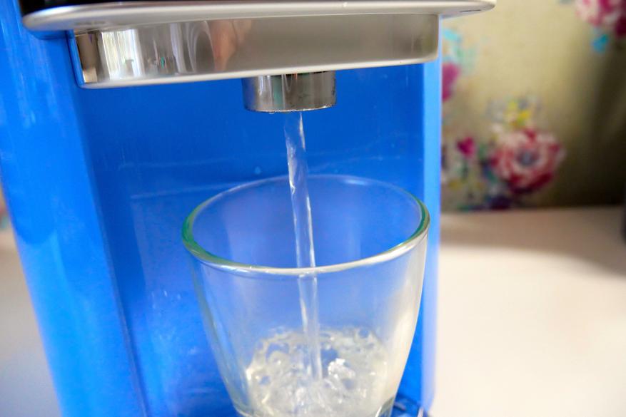 Кипяченая вода подается через носик. Вода подается только при снятии блокировки и только при удержании кнопки подачи воды в нажатом состоянии.