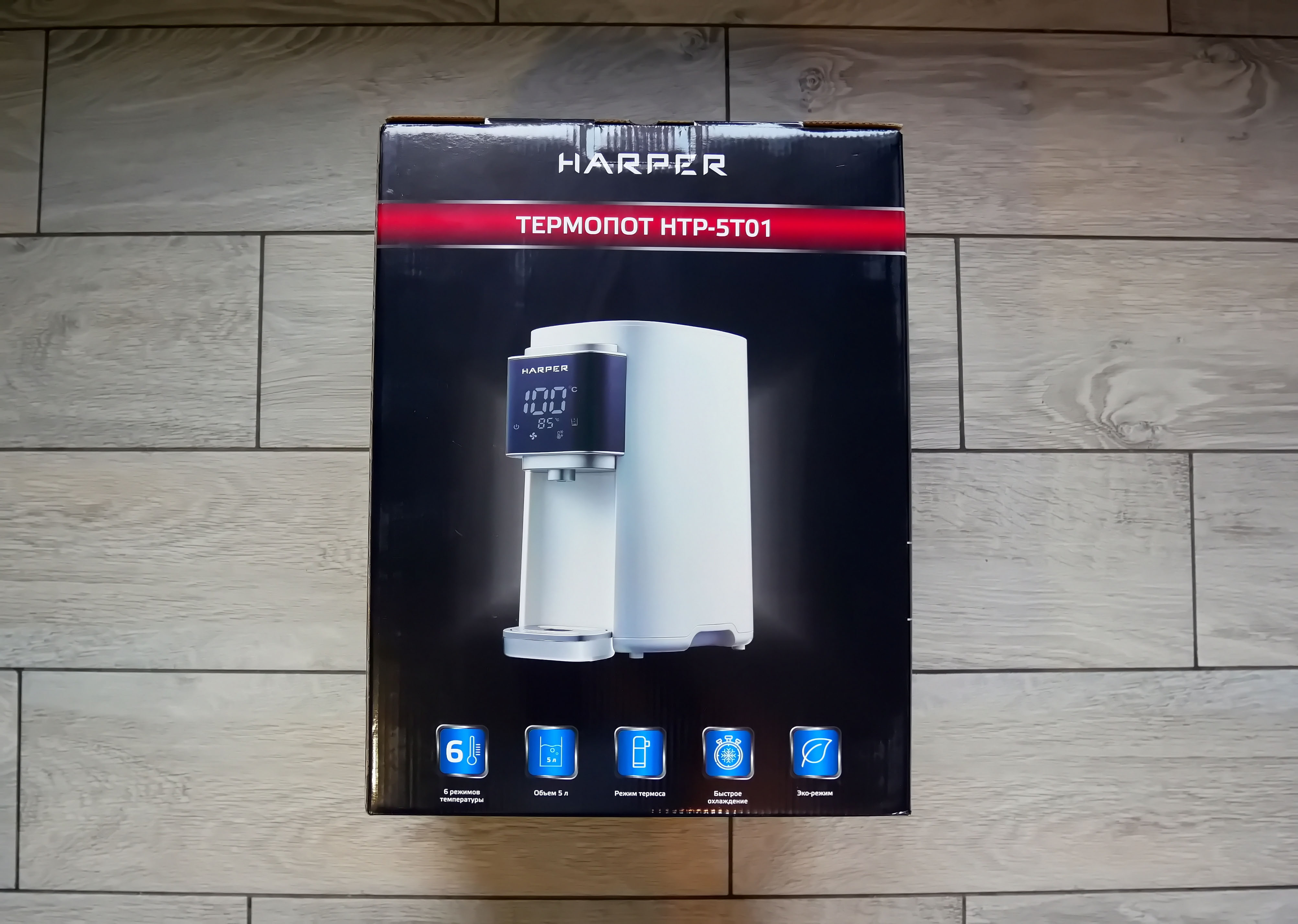 Термопот Harper HTP-5T01 — это устройство для кипячения воды и поддержания температуры воды в заданных параметрах. Термопот работает при постоянном подключении к электрической сети и способен как поддерживать температуру в шести диапазонах, так и работать в режиме термоса. Объема емкости термопота Harper — 4.8 литра, хватит для использования данного устройства как в домашних условиях, так и в небольших офисах.