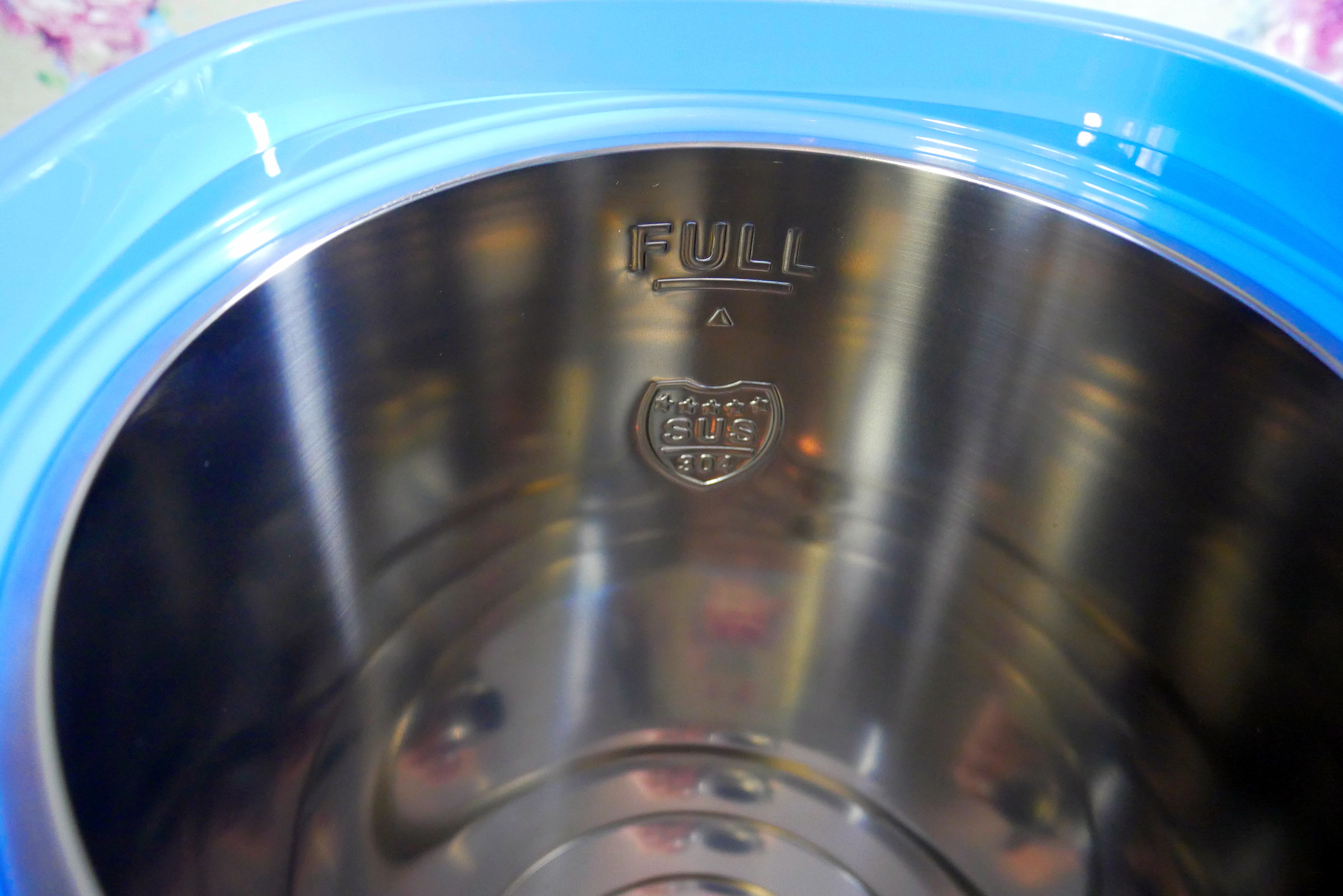 Колба для воды выполнена из нержавеющей стали марки SUS304. На самой колбе есть метка верхнего уровня жидкости, но при этом на самом термопоте нет каких-либо других показателей уровня залитой жидкости, что отрицательно скажется на удобстве эксплуатации. Каждый раз открывать крышку и смотреть сколько осталось воды — это и не удобно и отрицательно сказывается на температуре внутри термопота.