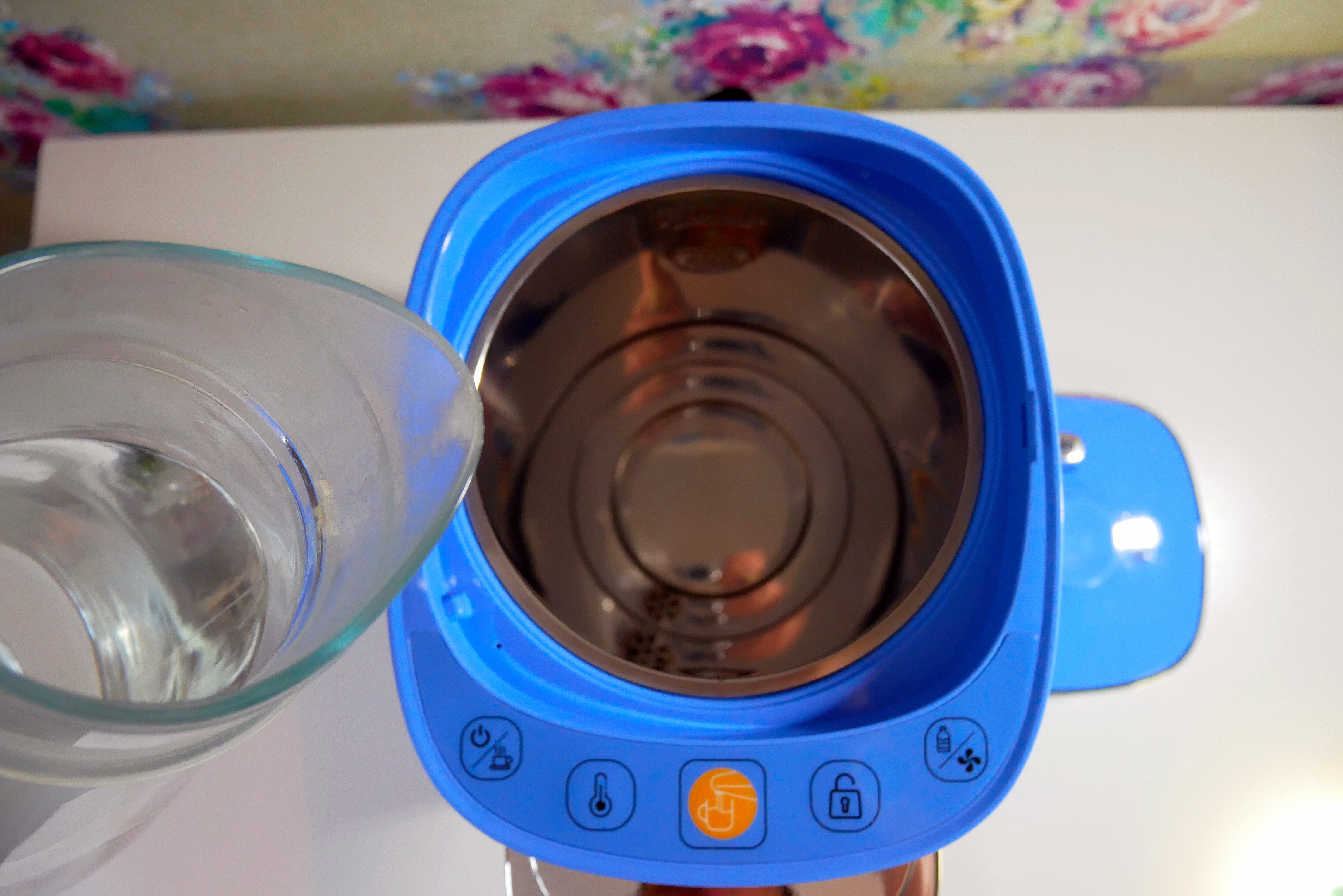 Вода в колбу термопота заливается с помощью дополнительной емкости. Перед первым использованием производитель рекомендует прокипятить воду два или три раза, слить ее и только потом использовать кипяченую воду для употребления.
