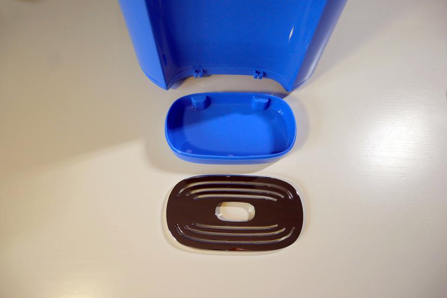 Подставка, на которую в процессе эксплуатации нужно ставить кружку, нужно установить в специальные защелки. Подставка состоит из двух частей. В процессе использования термопота возможно проливание жидкости мимо емкости, внутренняя часть подставки послужит для скапливания воды. Подставку можно легко отсоединить, разобрать, промыть и установить заново.