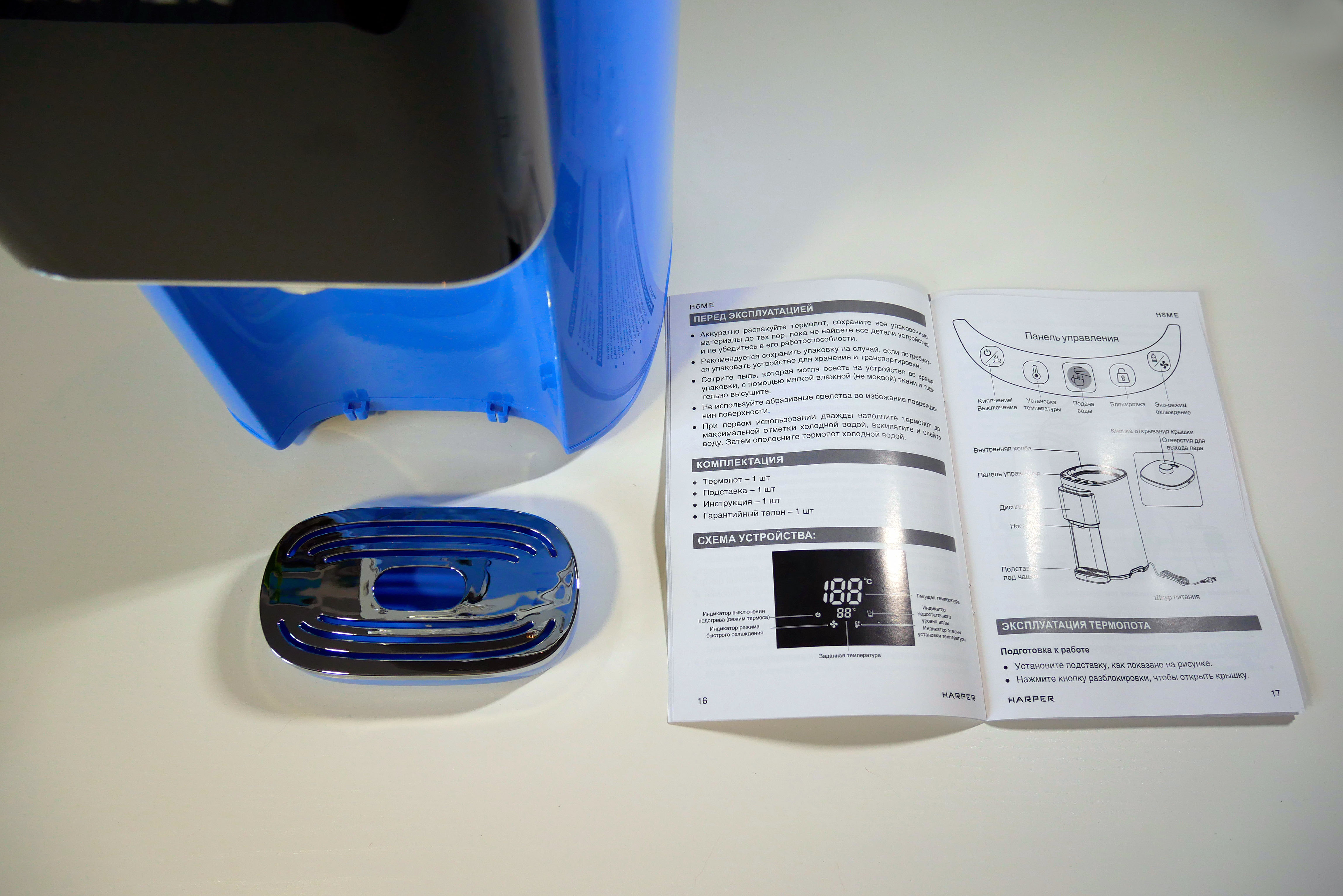 Термопот Harper сделан из пластика. Сборка достаточно качественная, люфтов составных частей не обнаружено, пластик при нажатии не прогибается. Термопот выглядит достаточно стильно и современно.
