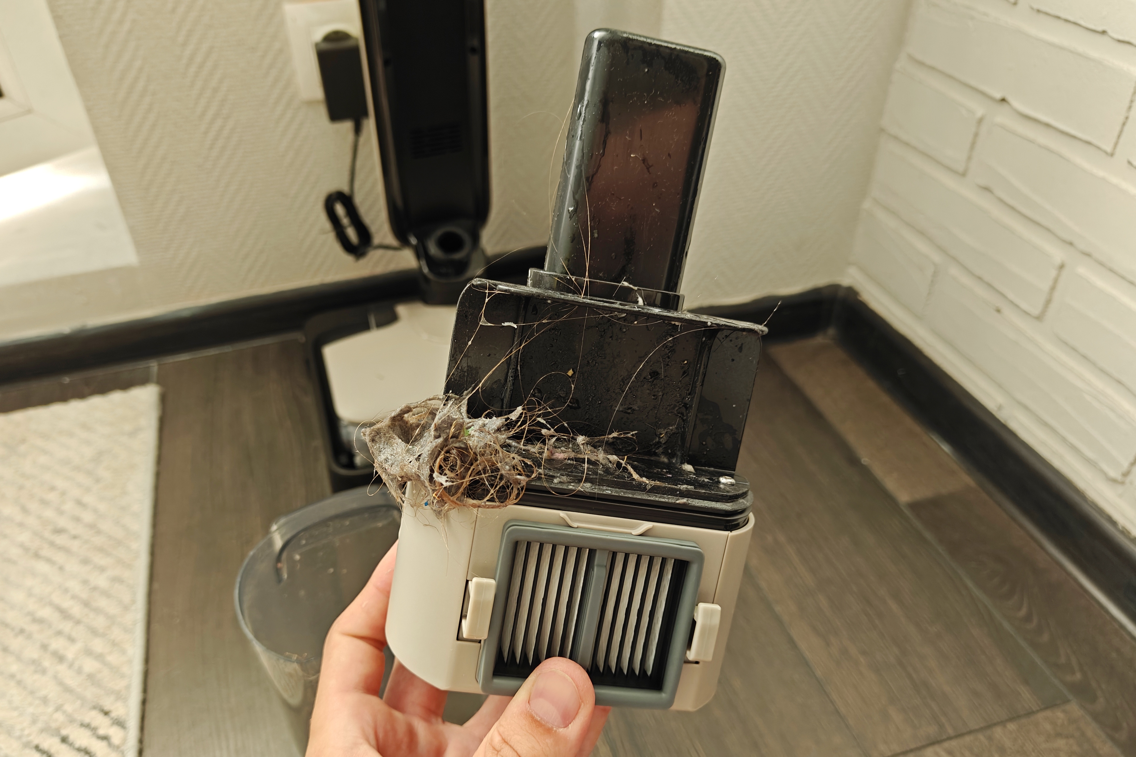 После уборки моих «абсолютно чистых» полов и ковров, в контейнере для грязной воды обнаружилась мутная жижа, в которой плавали комки волос. Для меня этот результат — лучшее доказательство, что Tineco iFloor Y2 убирает хорошо.