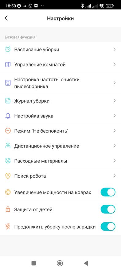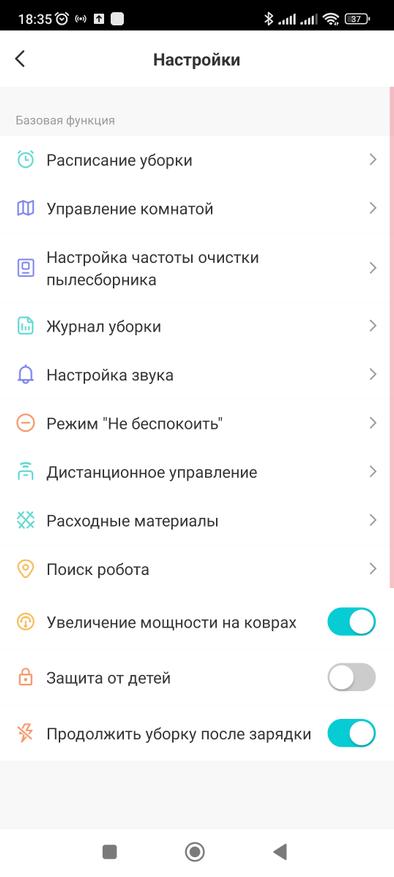 В приложении можно настроить время уборки по расписанию, при изменении погодных условий, по таймеру, настроить частоту очистки пылесборника, настроить звук, посмотреть журнал уборки, посмотреть какой остался ресурс у расходников и многое другое. Настройки гибкие и я считаю, что есть все необходимое для полноценной уборки квартиры. С помощью приложения вы можете управлять пылесосом в ручном режиме. Работая с пылесосом через мобильное приложение, нужно помнить, что в сети 5G нельзя настроить его. Он работает только в сети 2.4G. Также хочу обратить внимание на мощность док-станции, которая составляет 850 Вт, а сила всасывания из нашего робота 12 кПа.