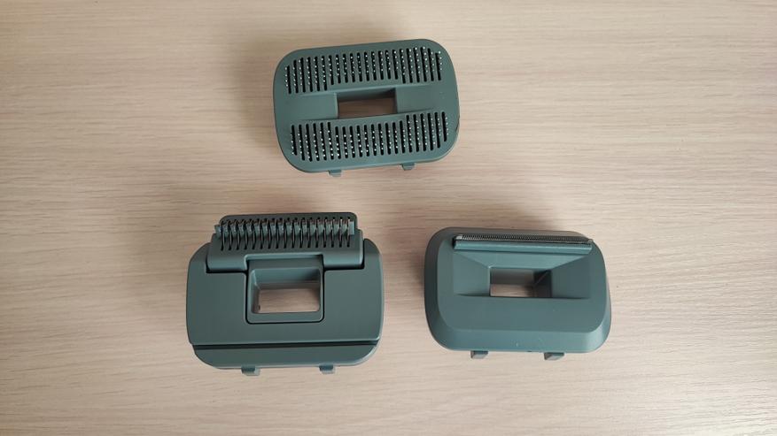 Если честно, то я первый раз встречаю в комплекте с роботом-пылесосом еще и набор для ухода за животными. Если вы когда-нибудь пытались убрать шерсть любимого питомца, а затем ещё и привести его в порядок — вы знаете, это не уборка, это борьба. Шерсть везде: на полу, в диване, на вас. Тут у нас целый мини-набор грумера, довольно продуманный и функциональный, каждая насадка выполняет свои функции.
