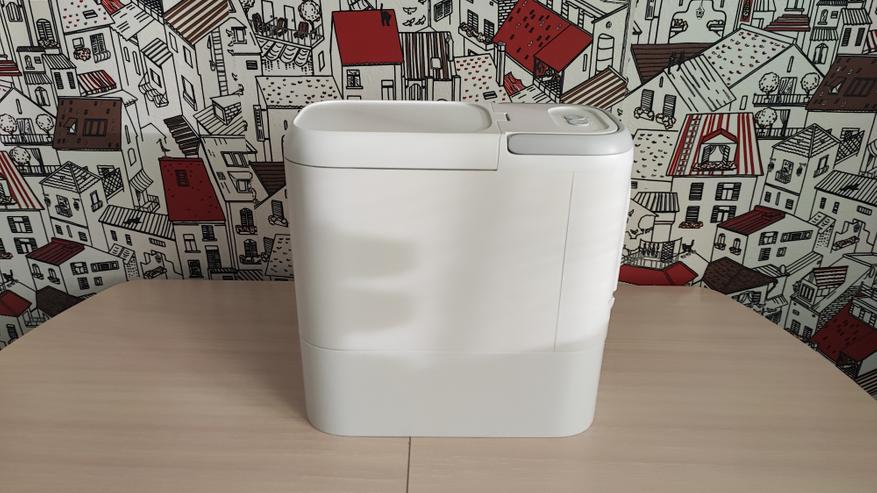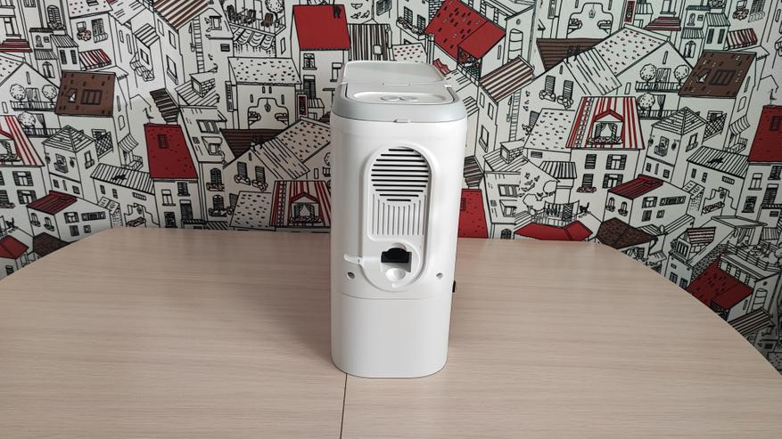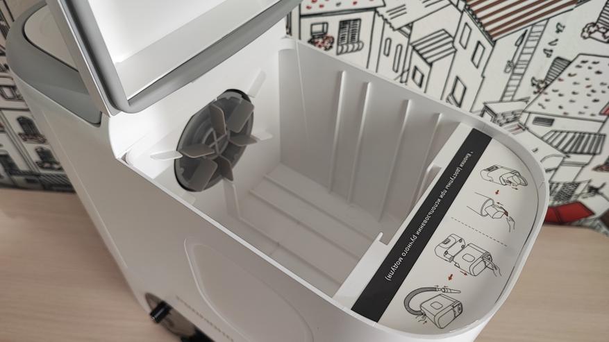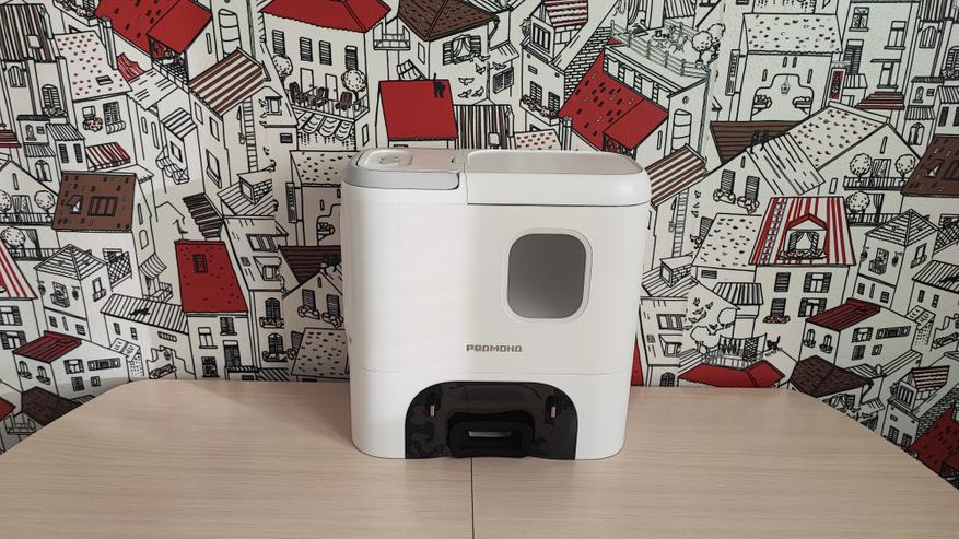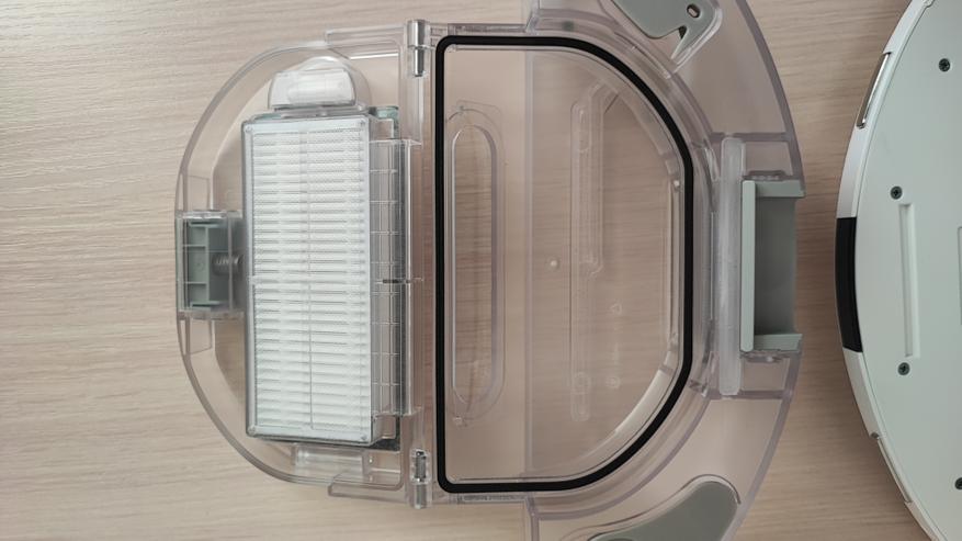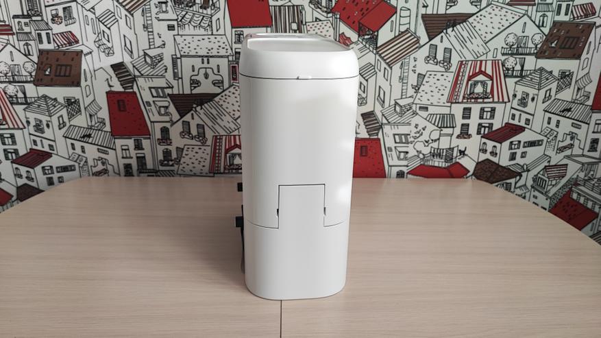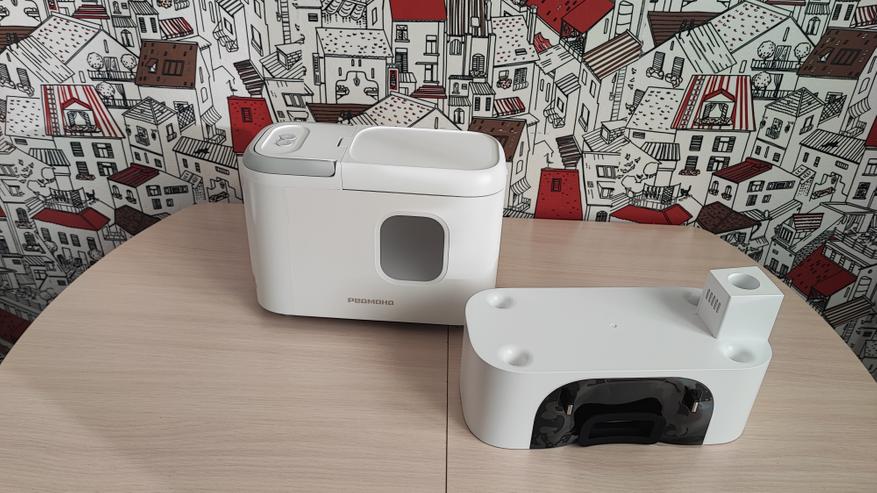 Станция самоочистки тоже сделана из пластика. В нижней части расположены контакты для зарядки, отсек для всасывания мусора из нашего робота. Контейнер для мусора устанавливается в верхней части устройства.
