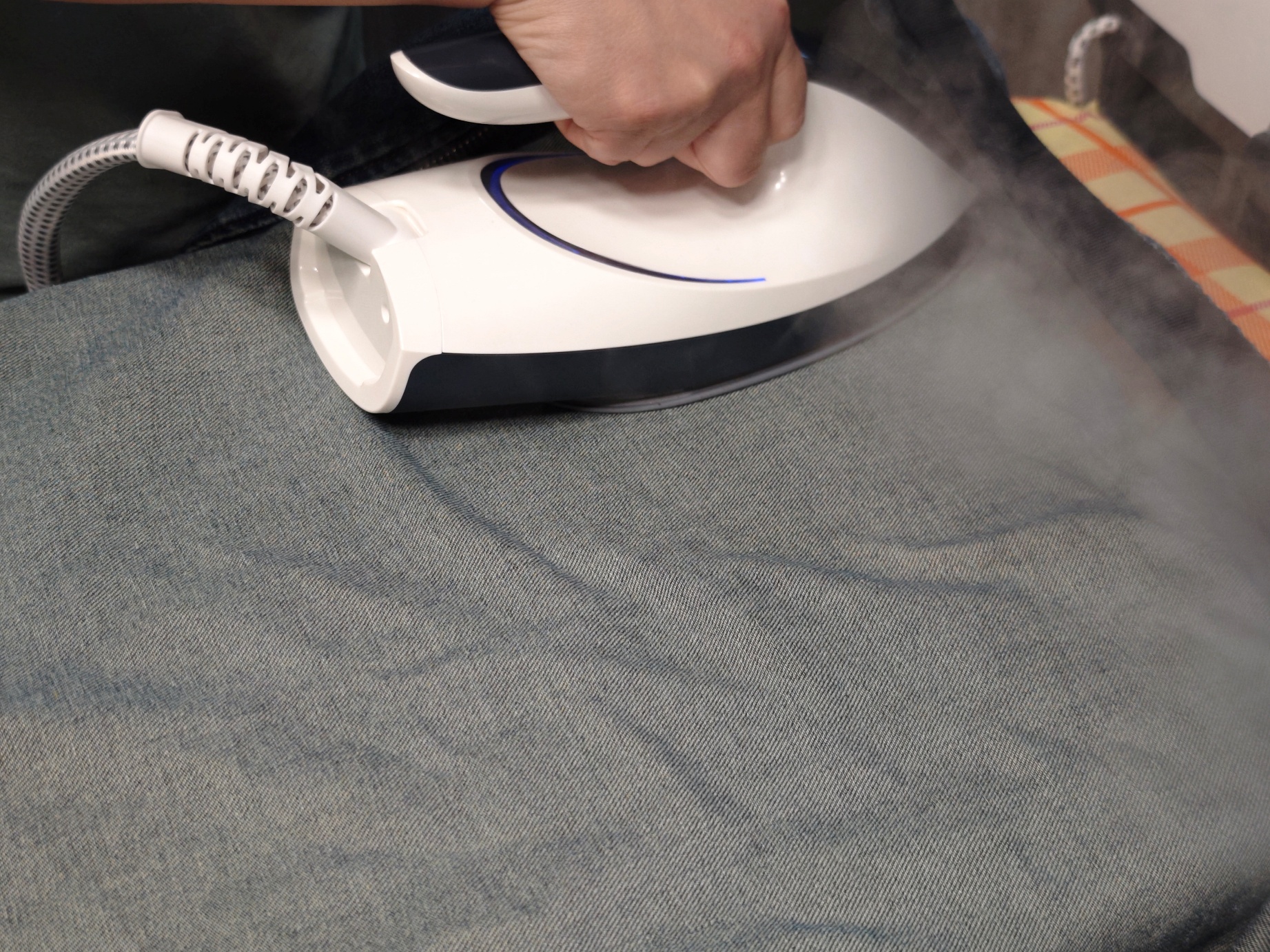 Анимация разглаживания складок на джинсовой ткани — достаточно один раз провести паровым утюгом.