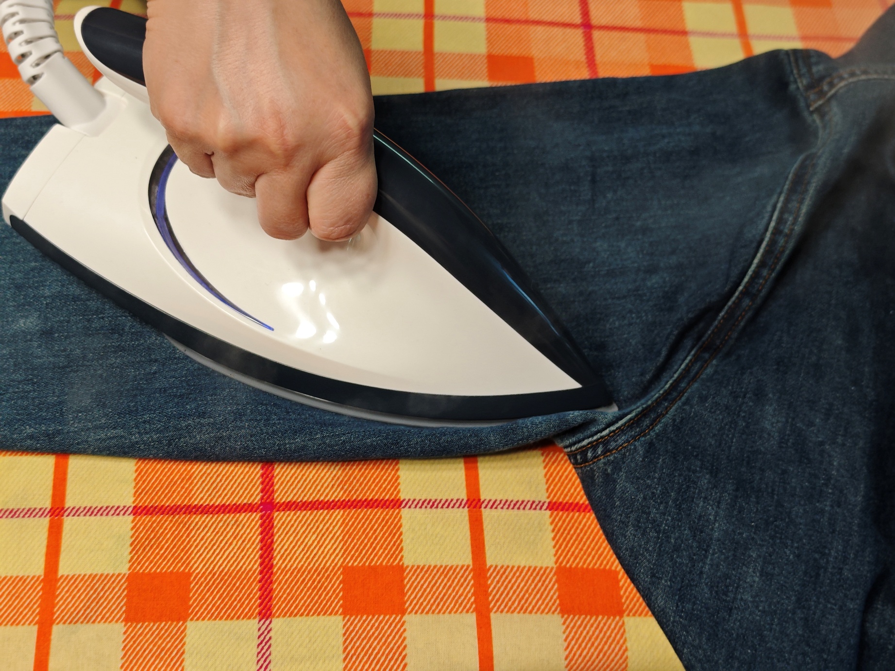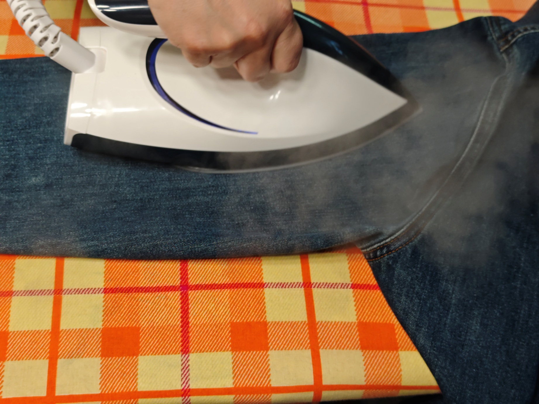 Всегда было не просто разгладить одежду из тяжелых тканей (лен/хлопок), особенно таких, как канвас и деним (джинсовые ткани). Для тяжелых тканей используйте режим максимального давления пара (HT). Паровой утюг справляется более чем хорошо.