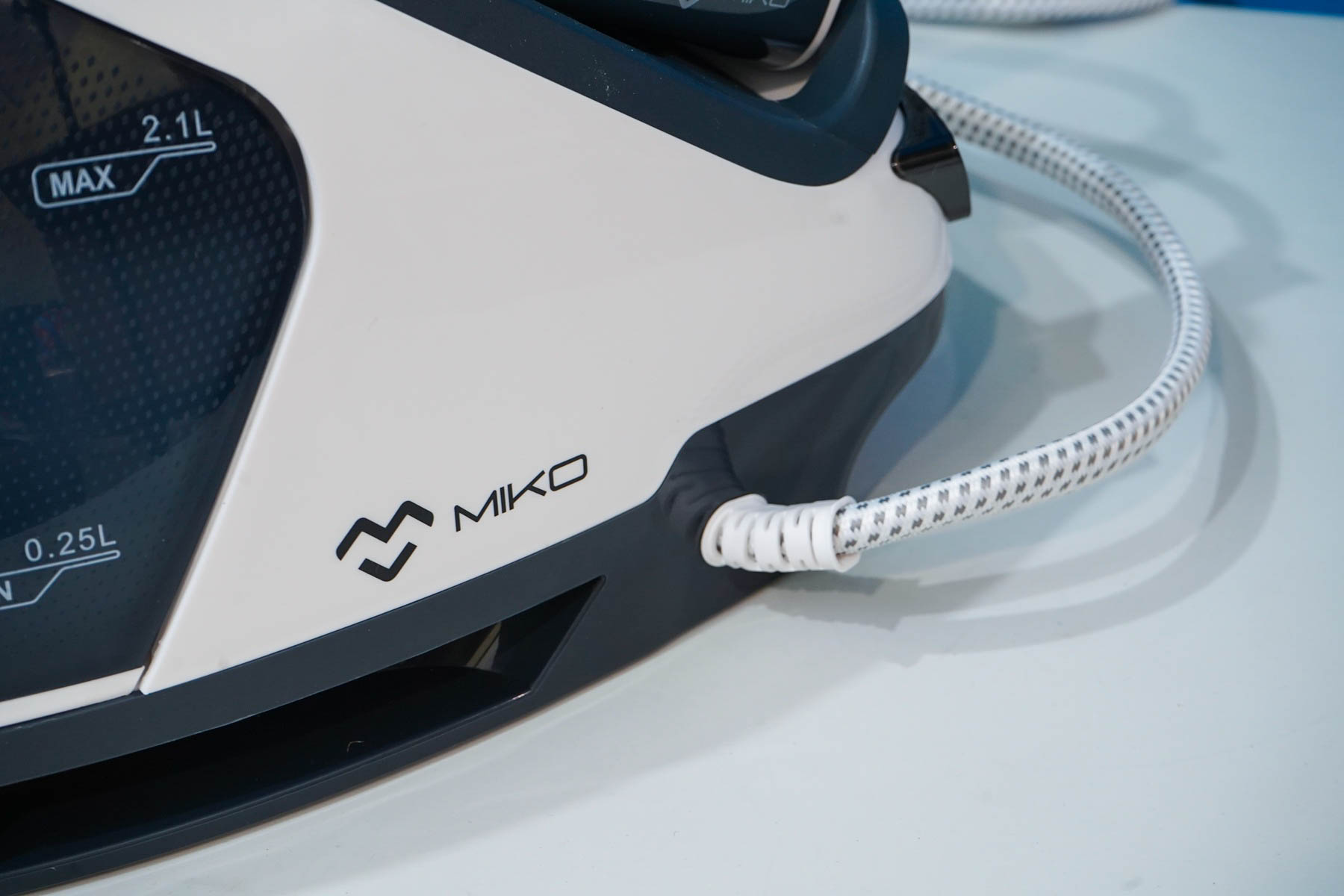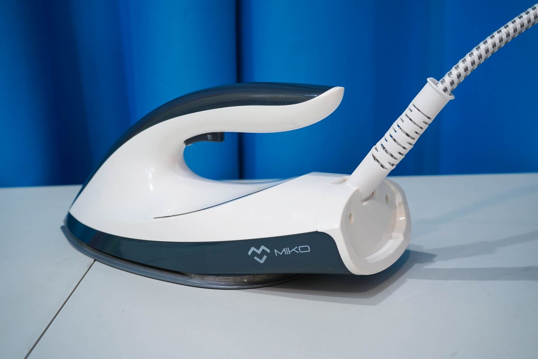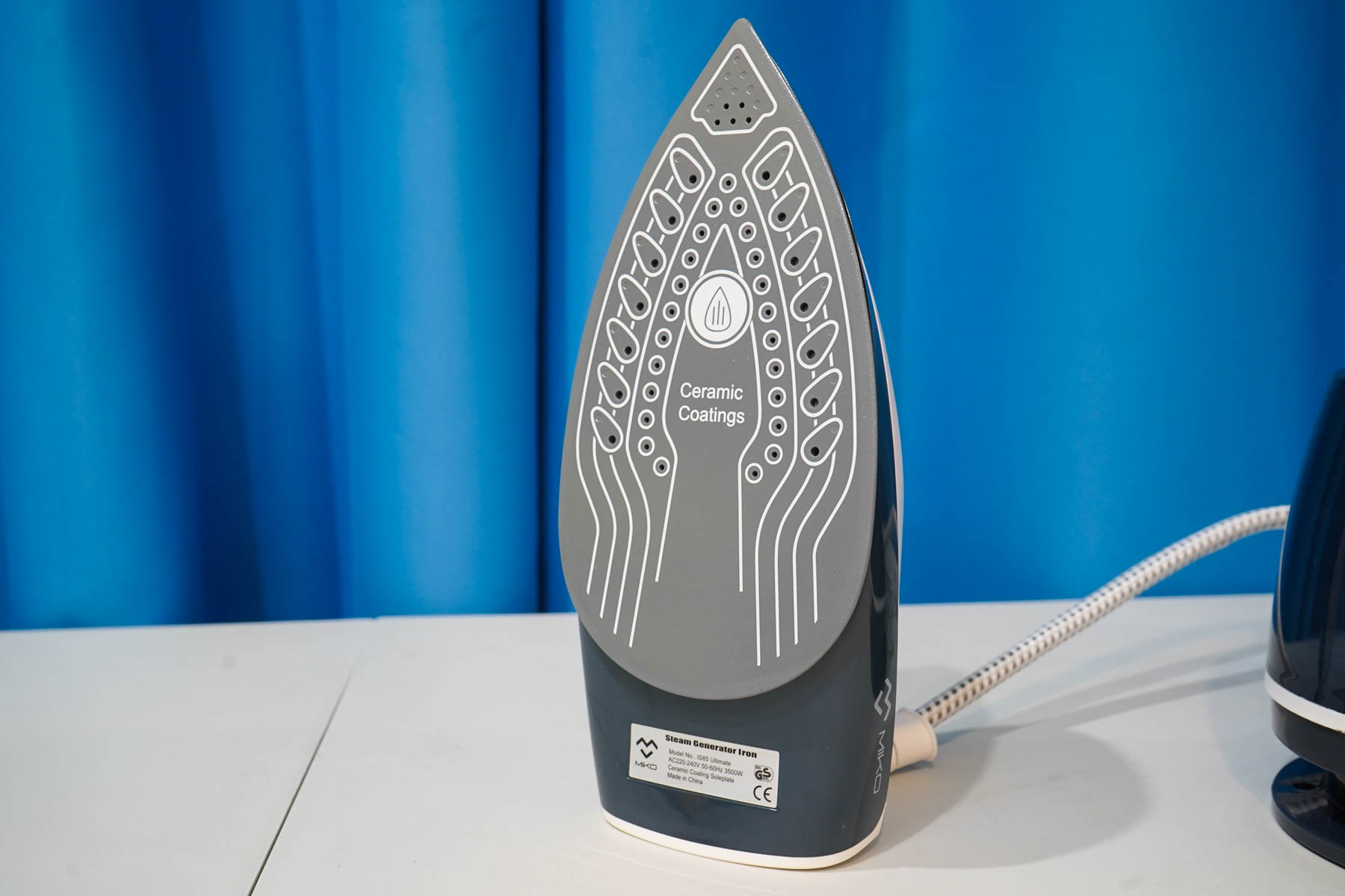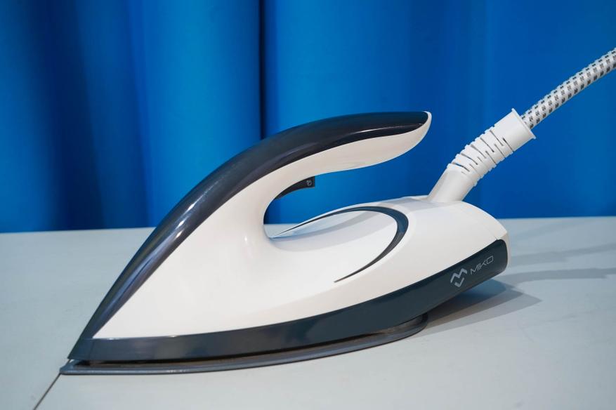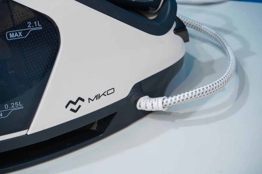 Подвижная часть этой системы глажки — паровой утюг, достаточно лёгкая. Паровой утюг системы MIKO IS85 Ultimate напоминает обычный утюг, подключен паропроводом к станции, оснащается подсветкой и кнопкой подачи пара. Рабочая поверхность имеет металлокерамическое покрытие, довольно стойкое к царапинам и имеющее антипригарный эффект. Заметно легче, чем классические электроутюги, что оказывает влияние в том случае, если вы проводите много времени за глажкой вещей.