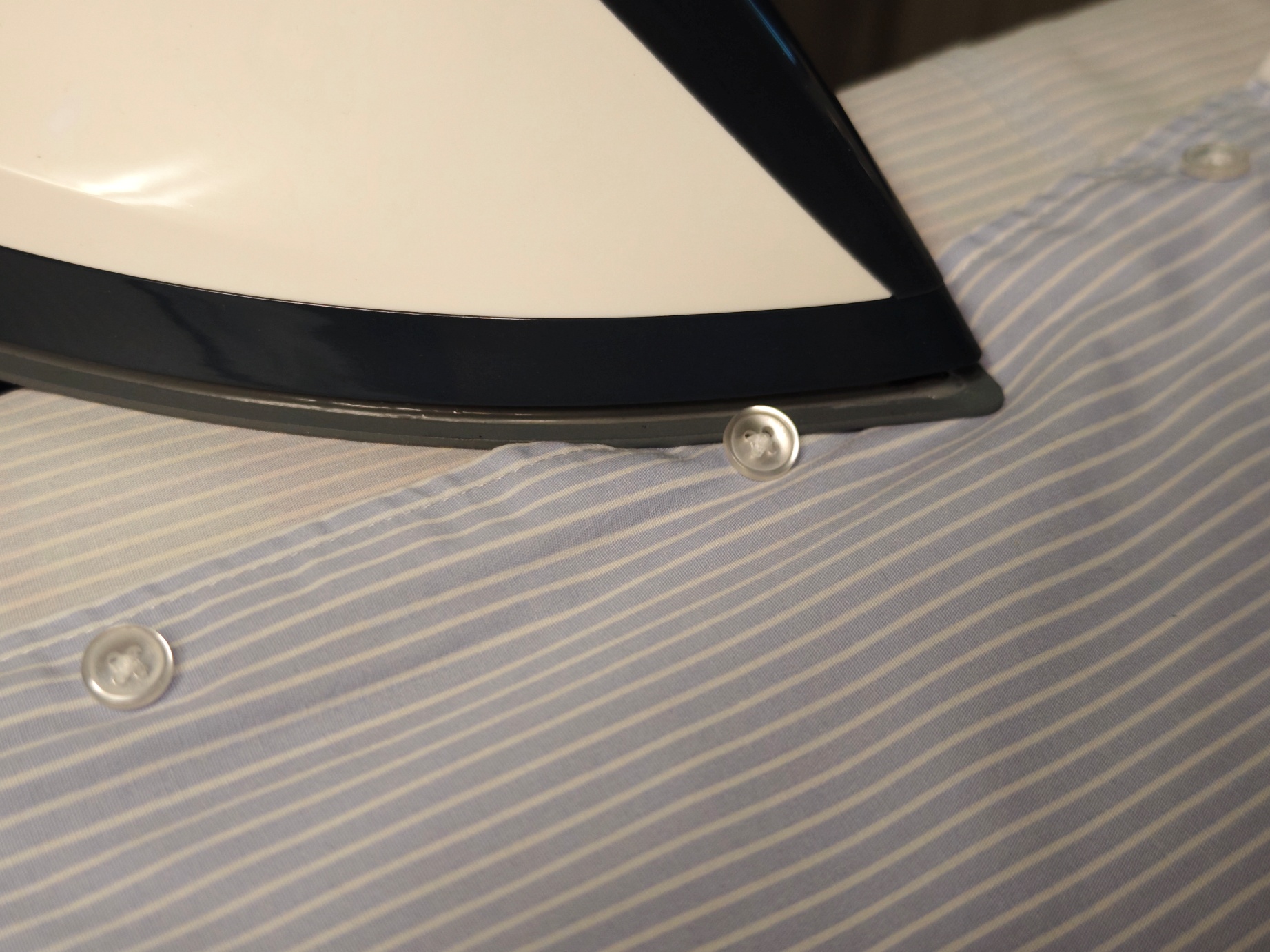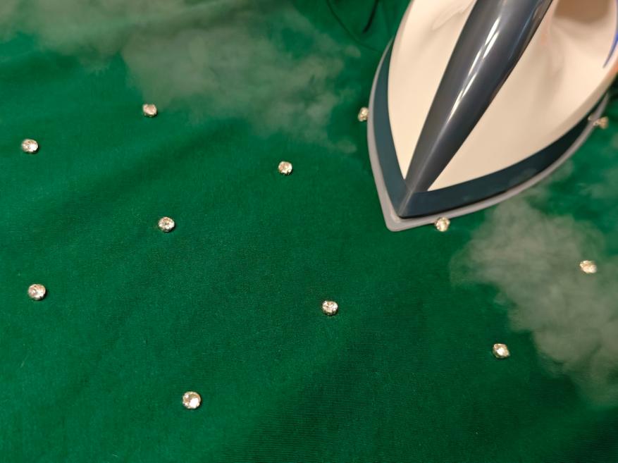 Для деликатных материалов активируйте экономичный режим и избегайте длительного контакта с тканью. Если попадаются пуговицы или иные декоративные элементы, то можно аккуратно обойти, используя выступ в основании подошвы утюга. Ну или ограничиться проглаживанием с изнаночной стороны ткани.