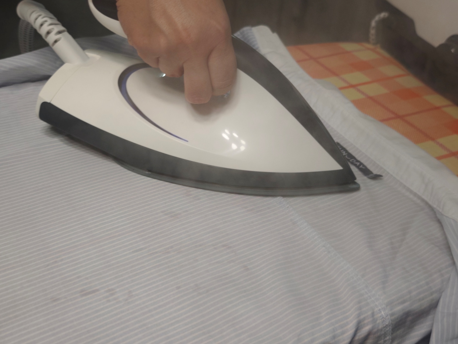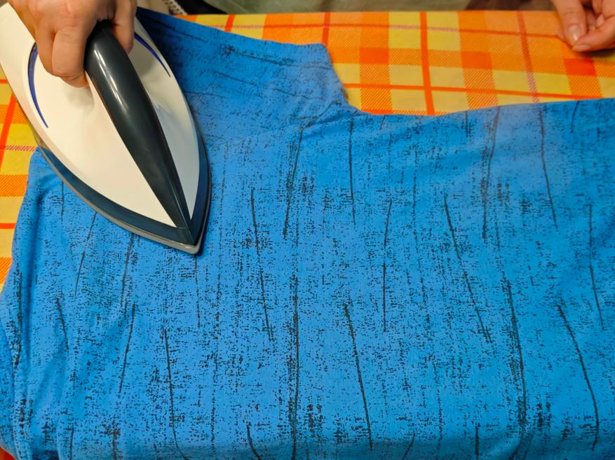 Давно не гладил паром, но про подобные гладильные системы знал и хотел попробовать. Начал с обычной футболки. Если у вас одежда с легкой синтетики или из шелка, то ставьте минимальный нагрев (ECO). Там и температура ниже, и пара меньше, что дает возможность справляться с деликатными материалами. Для синтетических футболок это также актуально. Если с добавлением хлопка, то можно смело ставить режим СТ, что я и сделал.