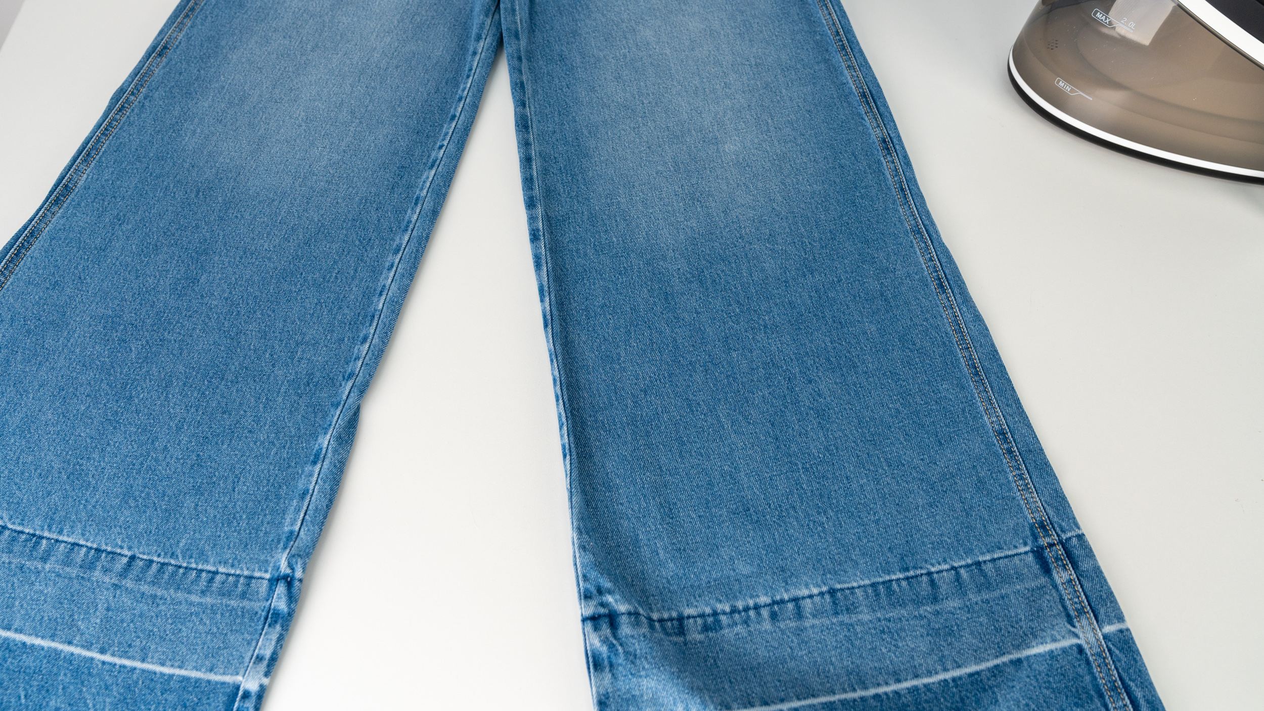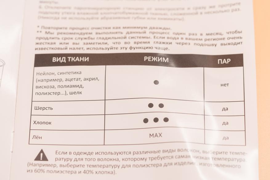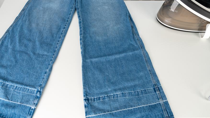 Непрерывная подача пара (150 г/мин) и функция парового удара (300 г/мин) позволили эффективно разглаживать даже жесткие многослойные участки материала.