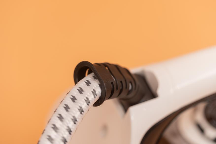 Ввод кабеля питания и шланга в корпус защищен шарнирным узлом от деформации. Шланг длиной 1.5 м обеспечивает необходимую подвижность прибора.