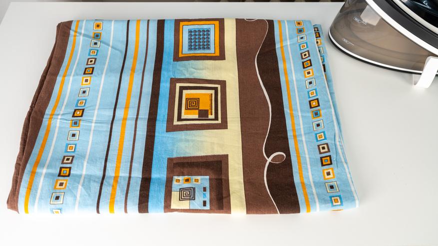 Испытания показали эффективное разглаживание рубашки. Аналогично, образец постельного белья из плотного хлопка, сложенный в несколько слоев, был обработан успешно. Мощный поток пара обеспечил проникновение через многослойную структуру ткани.