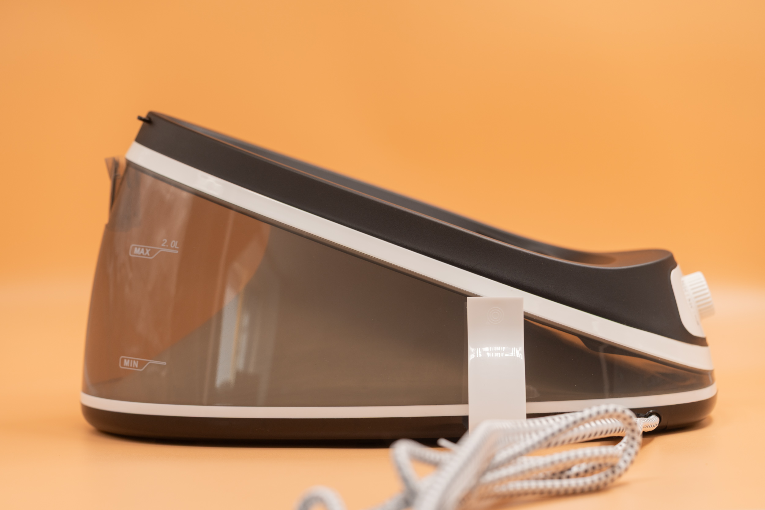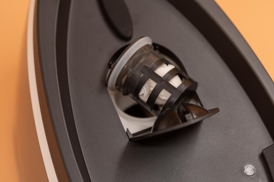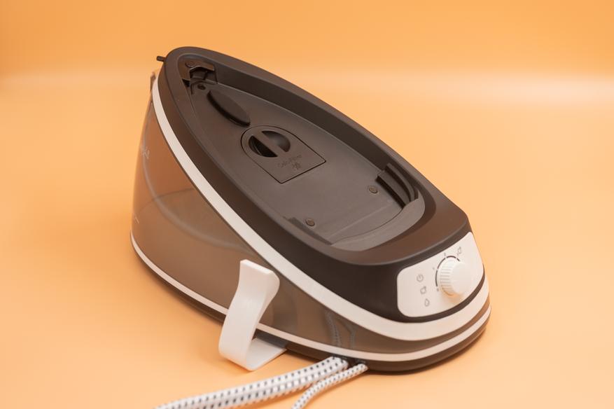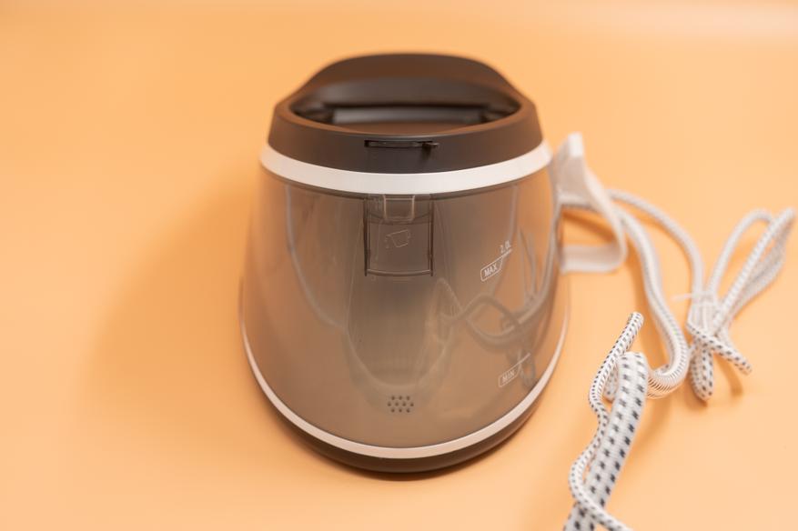 В парогенераторной станции расположен резервуар для воды, объемом 2 л, он интегрирован в основание прибора и не является съемным. Прозрачный материал корпуса резервуара позволяет отслеживать уровень воды.