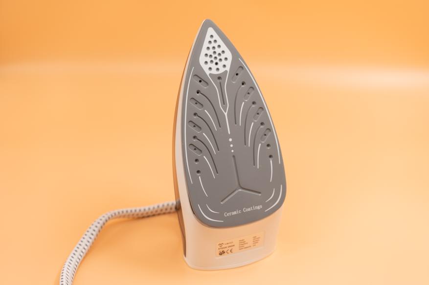 Подошва утюжка MIKO IS85 выполнена с керамическим покрытием, способствующим плавному скольжению по различным тканям и минимизирующим риск их повреждения. Материал подошвы обладает повышенной стойкостью к царапинам и не требует сложного ухода (достаточно влажной ткани), однако уязвим при механических ударах. Паровыводящие отверстия размещены в удлиненной носовой части (оптимизированной для труднодоступных мест) и по периферии подошвы.