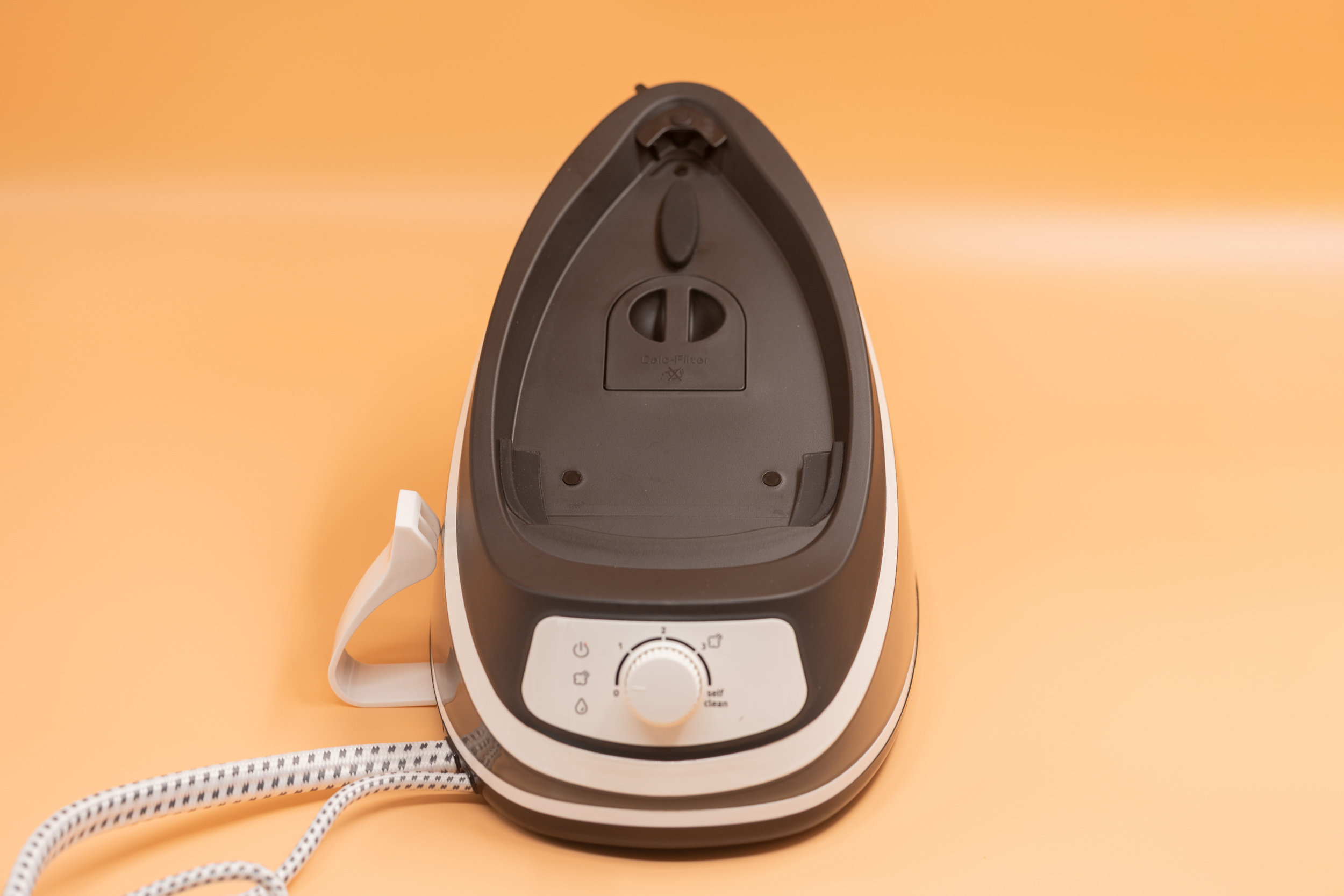 На задней панели корпуса предусмотрена опорная площадка для вертикального размещения утюжка.