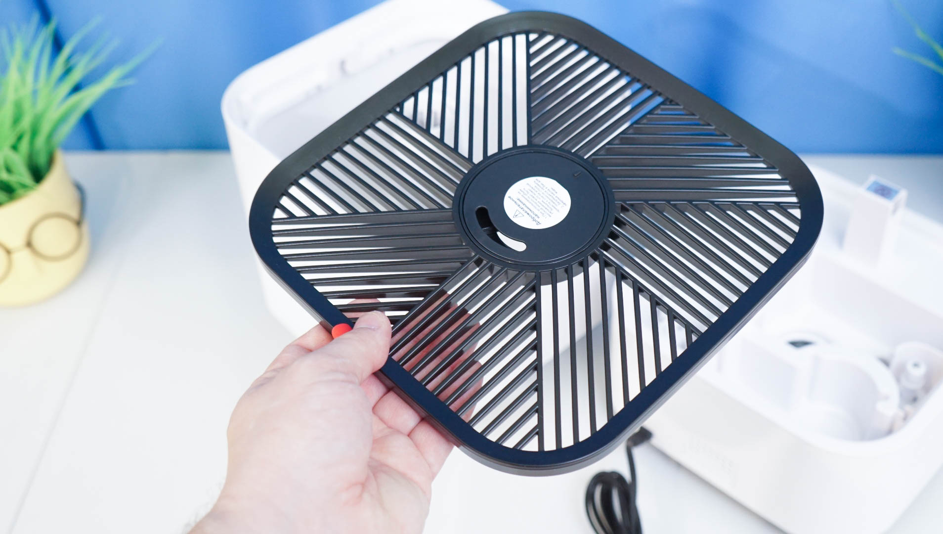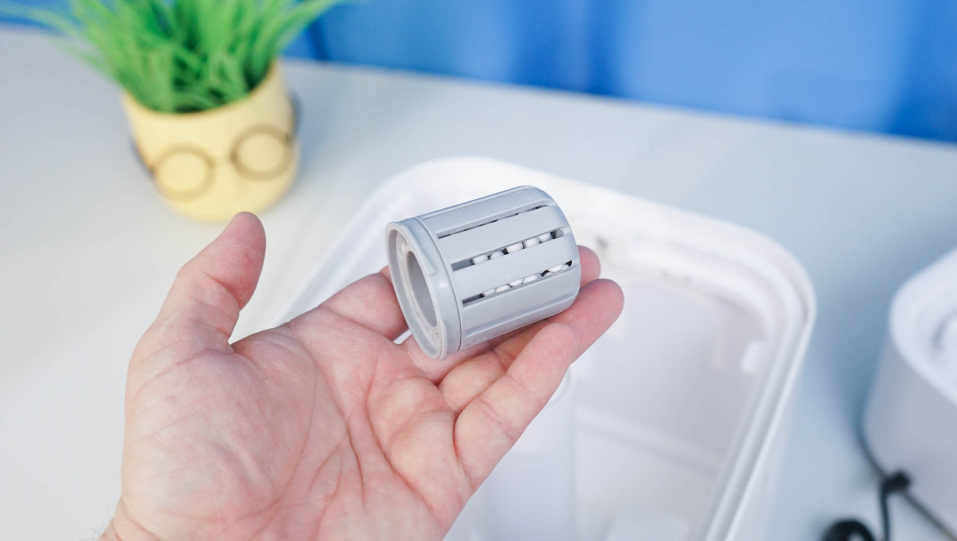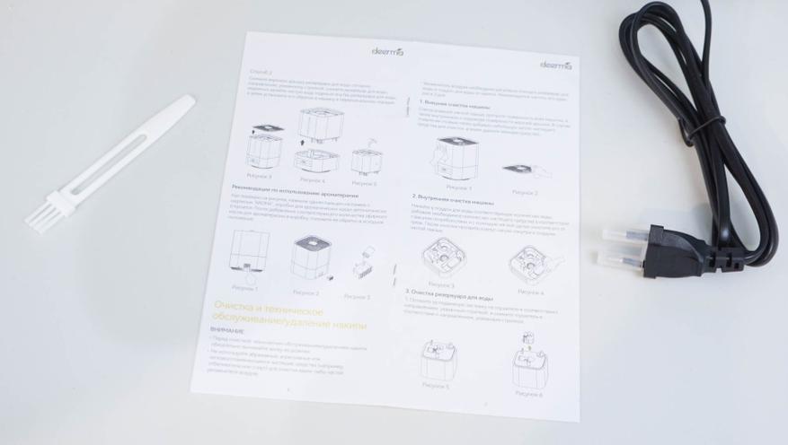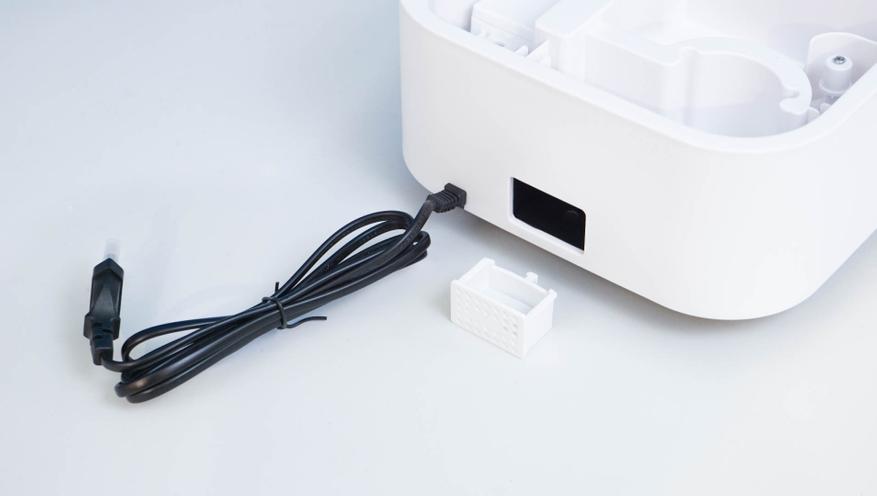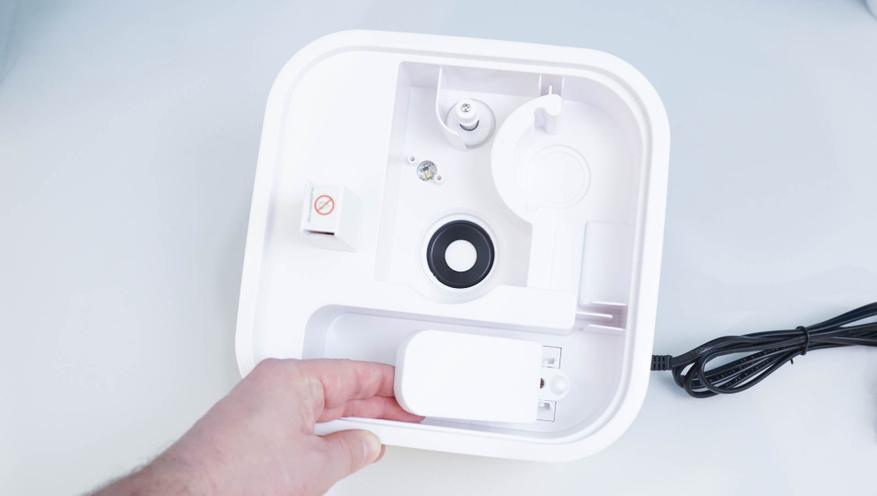 Все конструкция разборная, полностью снимается и диффузор, и резервуар для воды. Есть доступ к внутреннему УЗ-модулю, а также для обслуживания фильтров. Используется керамический фильтрующий элемент — он обеспечивает дополнительную очистку воды перед распылением. Не забывайте его периодически промывать, как и поддерживать чистоту самого резервуара. Благо, его можно полностью снять с корпуса и промыть проточной водой. Уровень воды можно оценить визуально — для этого сделана вертикальная прорезь в корпусе.