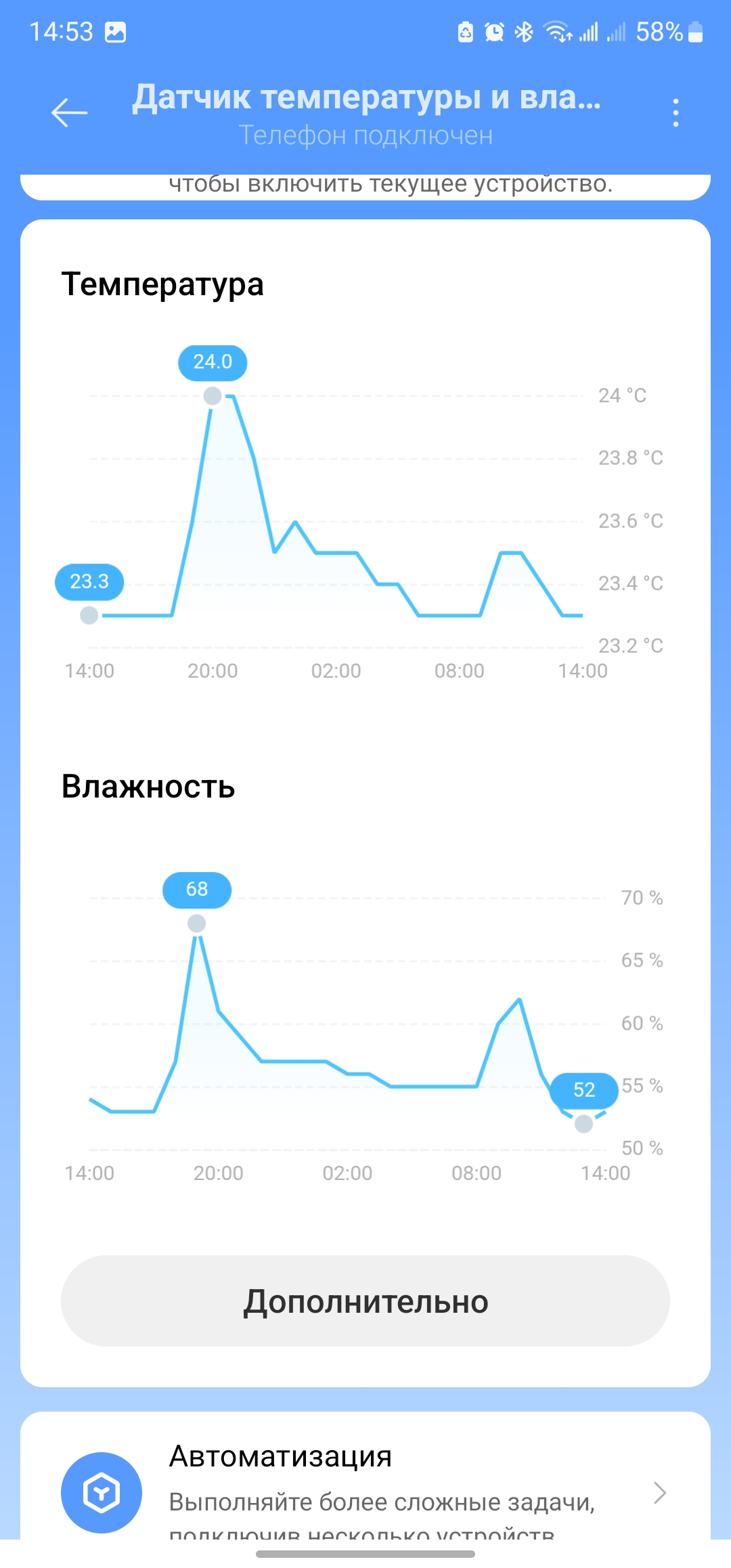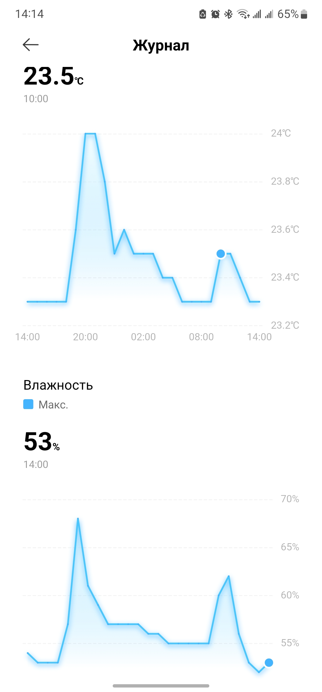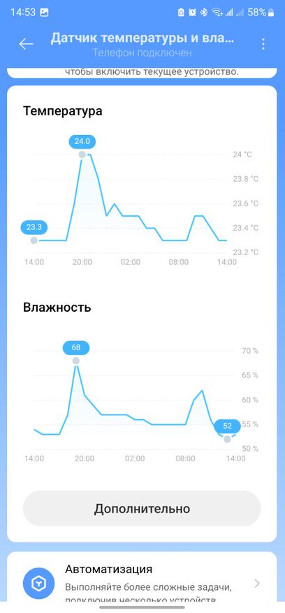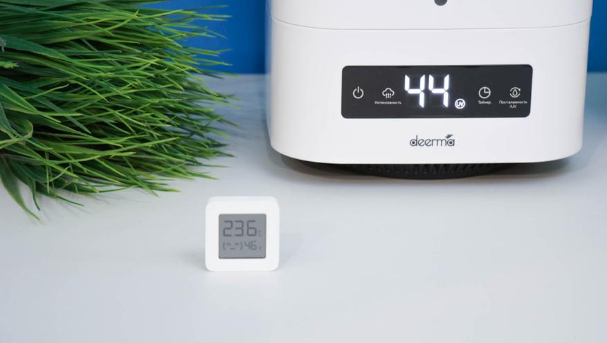Сравнивал показания встроенного гигрометра с датчиком от Xiaomi. Есть небольшая разница в показаниях, я связываю это с тем, что датчик увлажнителя встроен на входе в устройство и оценивает сухой воздух. А сенсор от Xiaomi я держу рядом с корпусом прибора, куда уже попадает влага. Разница в показаниях у меня достигала стабильно пару процентов относительной влажности — не критично для общего состояния воздуха в помещении.