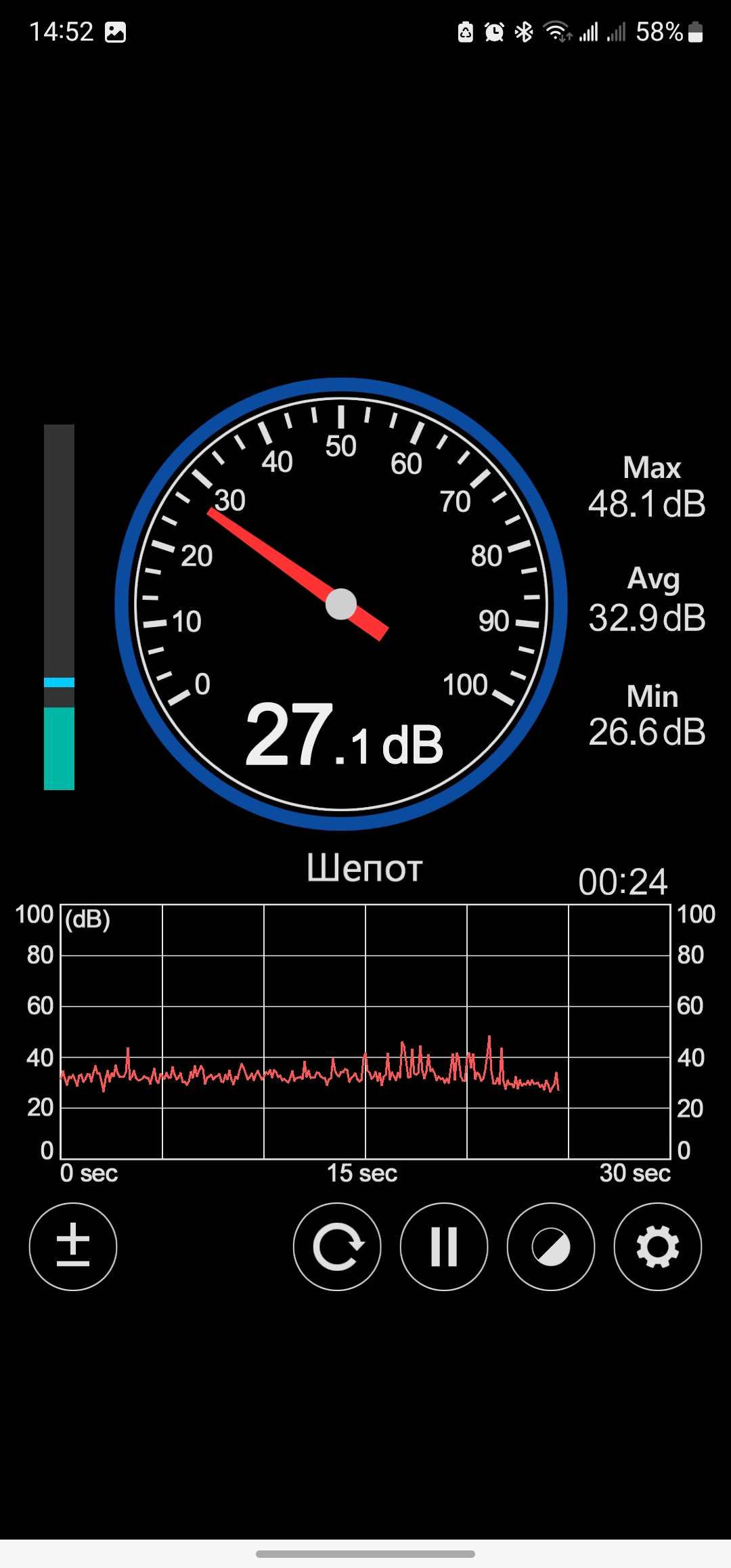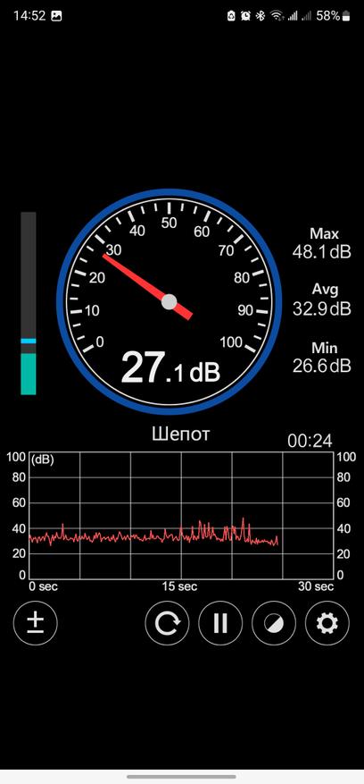 Сделал пару замеров уровня влажности в помещении. У меня довольно сухо в помещении (40…50 процентов), и увлажнитель так или иначе приходится включать. В максимальном режиме «разгоняет» влагу очень интенсивно — на графиках видны ступеньки. За короткое время DEERMA F953W позволяет исправить уровень относительной влажности в помещении не прибегая к «народным» методам наподобие развешивания мокрых полотенец и так далее. Уровень шума при максимальной режиме испарения составляет около 26-27 децибел. Это слышно, но не раздражает, напоминает тихий шелест вентилятора. А в ночном режиме (минимальный уровень испарения) увлажнитель практически не слышно (20-22 дБ вблизи). Так что можно спокойно спать при включенном приборе.