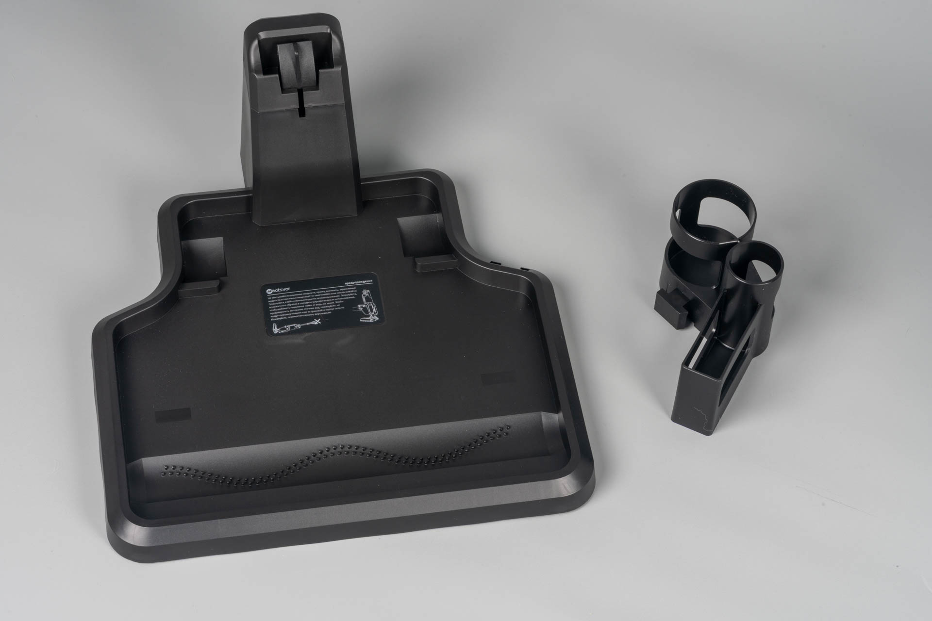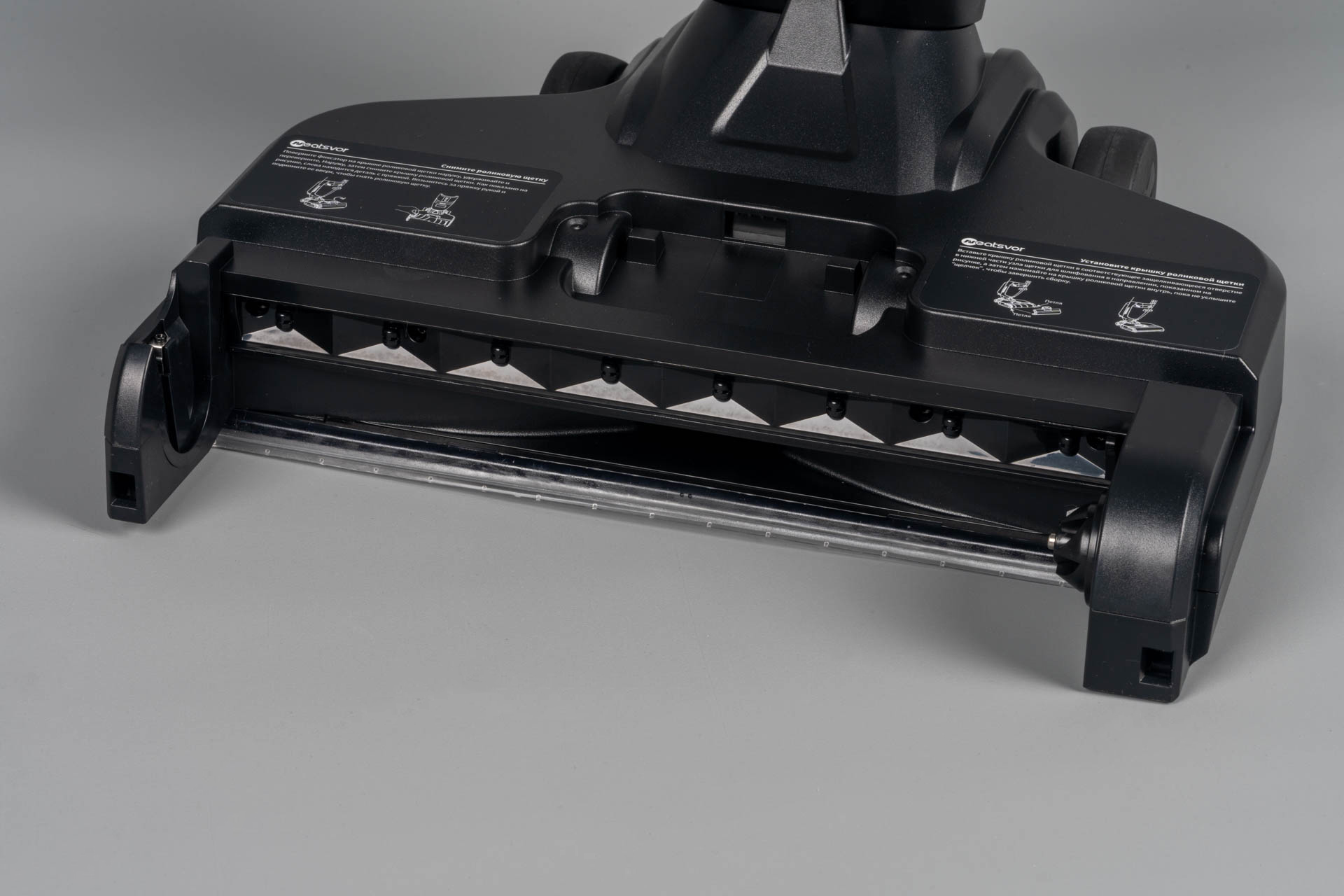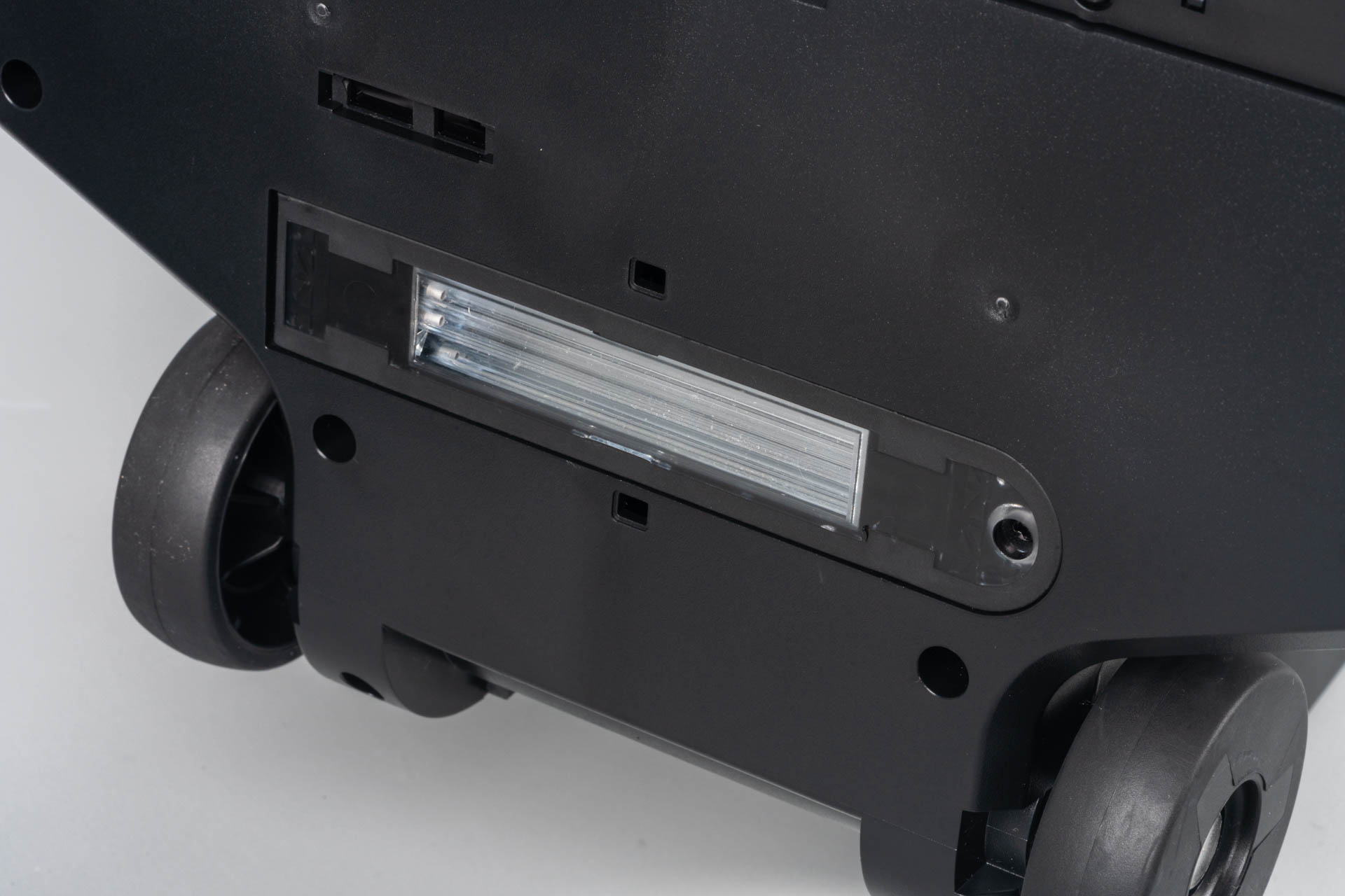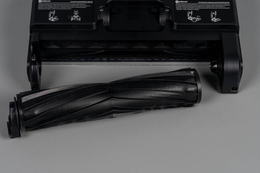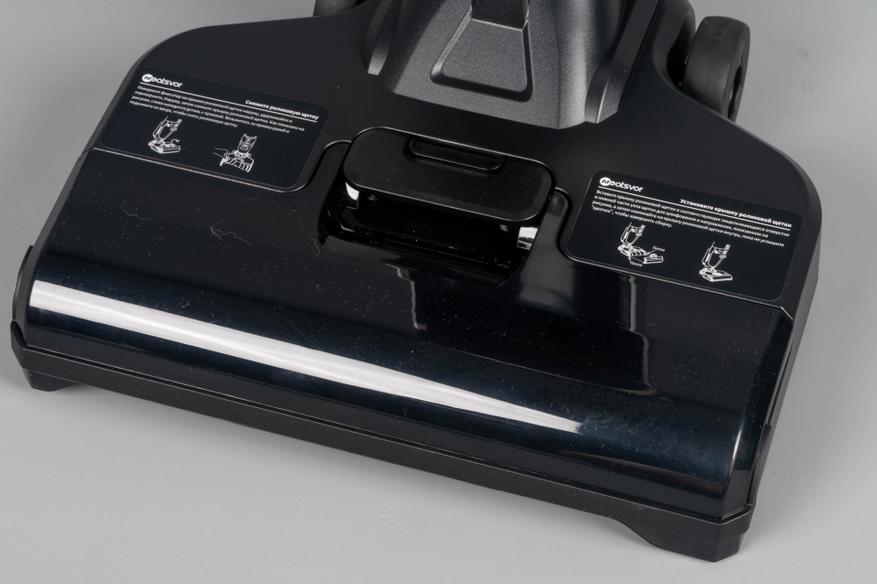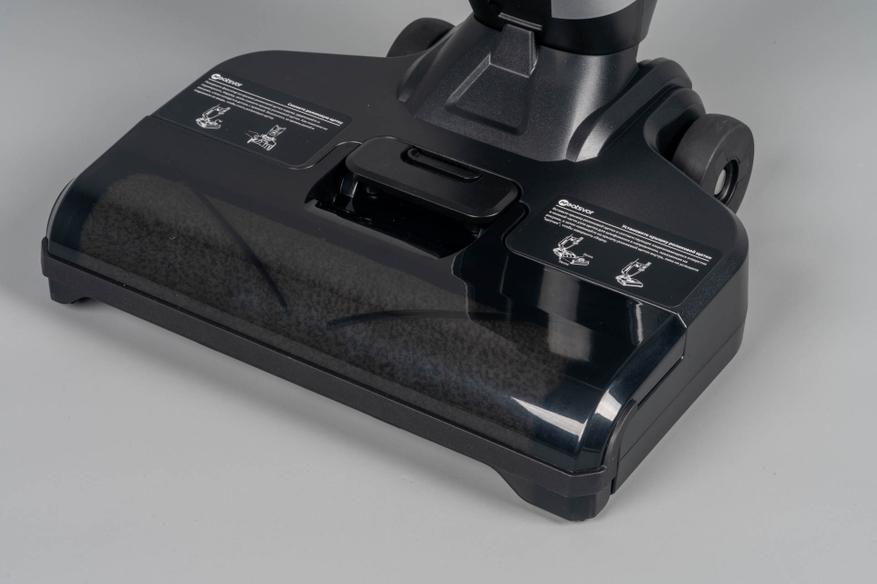 Перемещение платформы обеспечивается двумя основными колесиками, расположенными по ее боковым граням. Ширина роллера меньше ширины корпуса модуля, что может затруднять очистку вплотную к плинтусам.