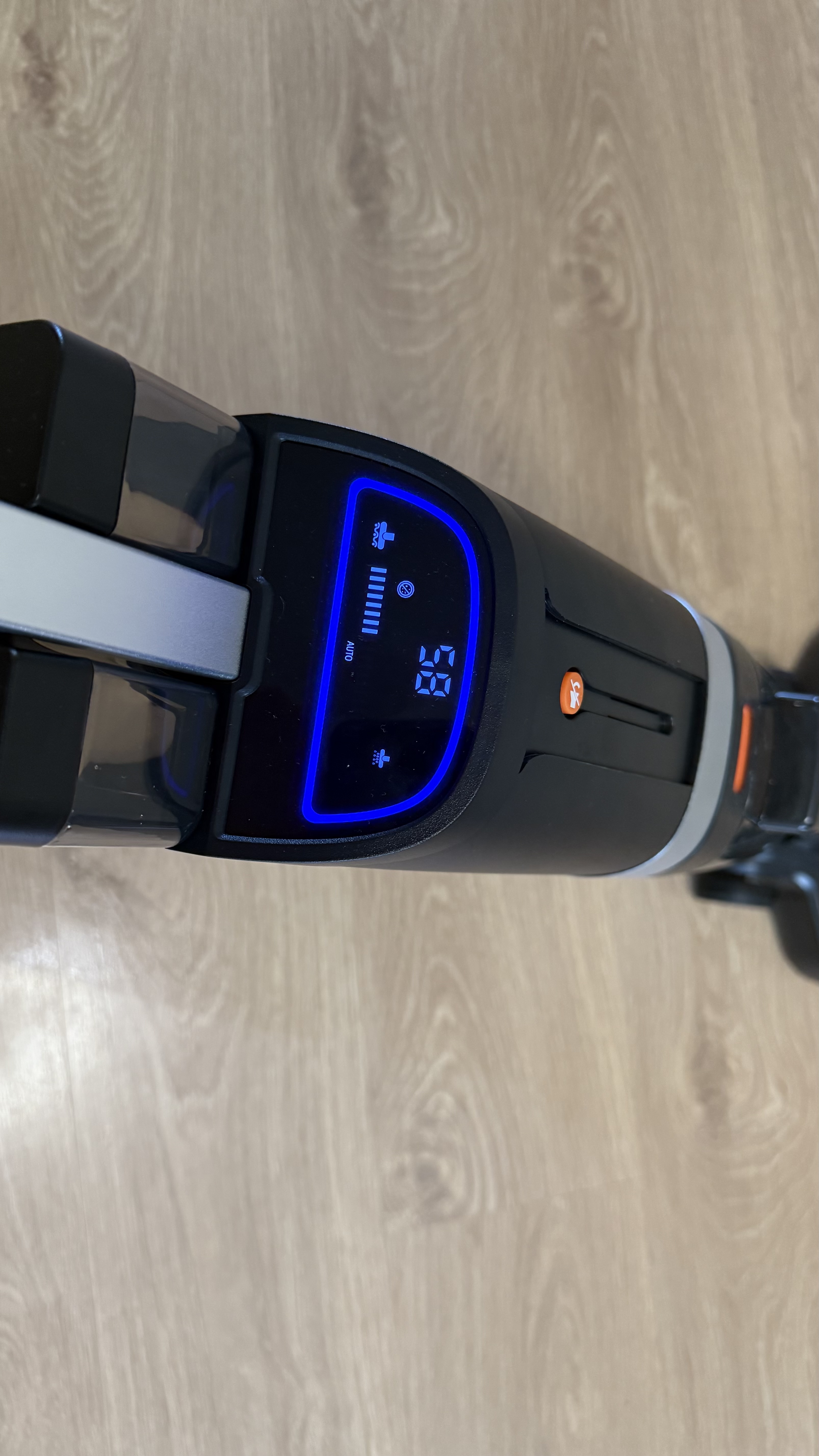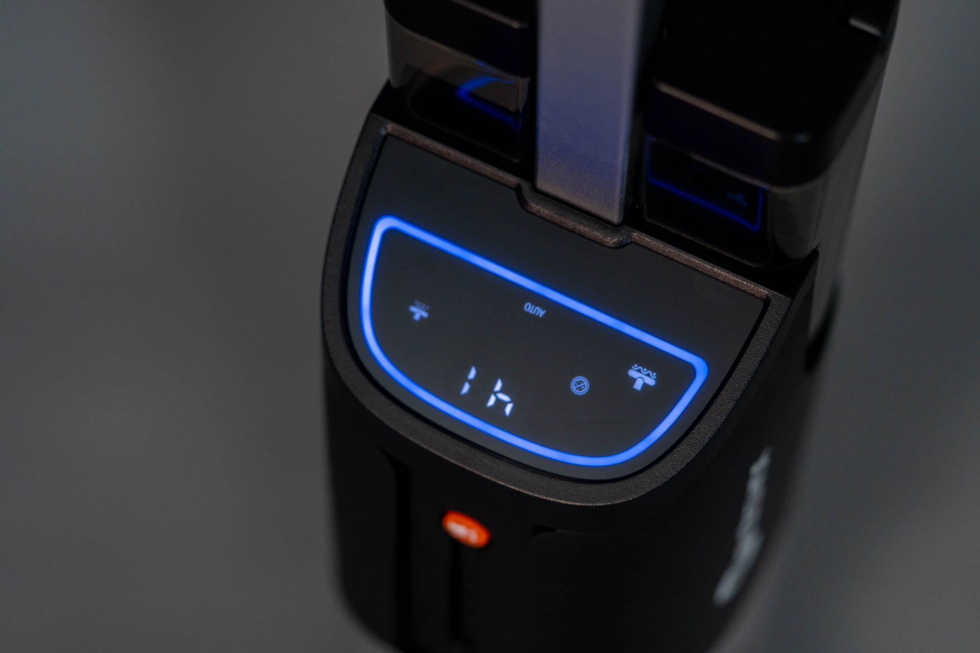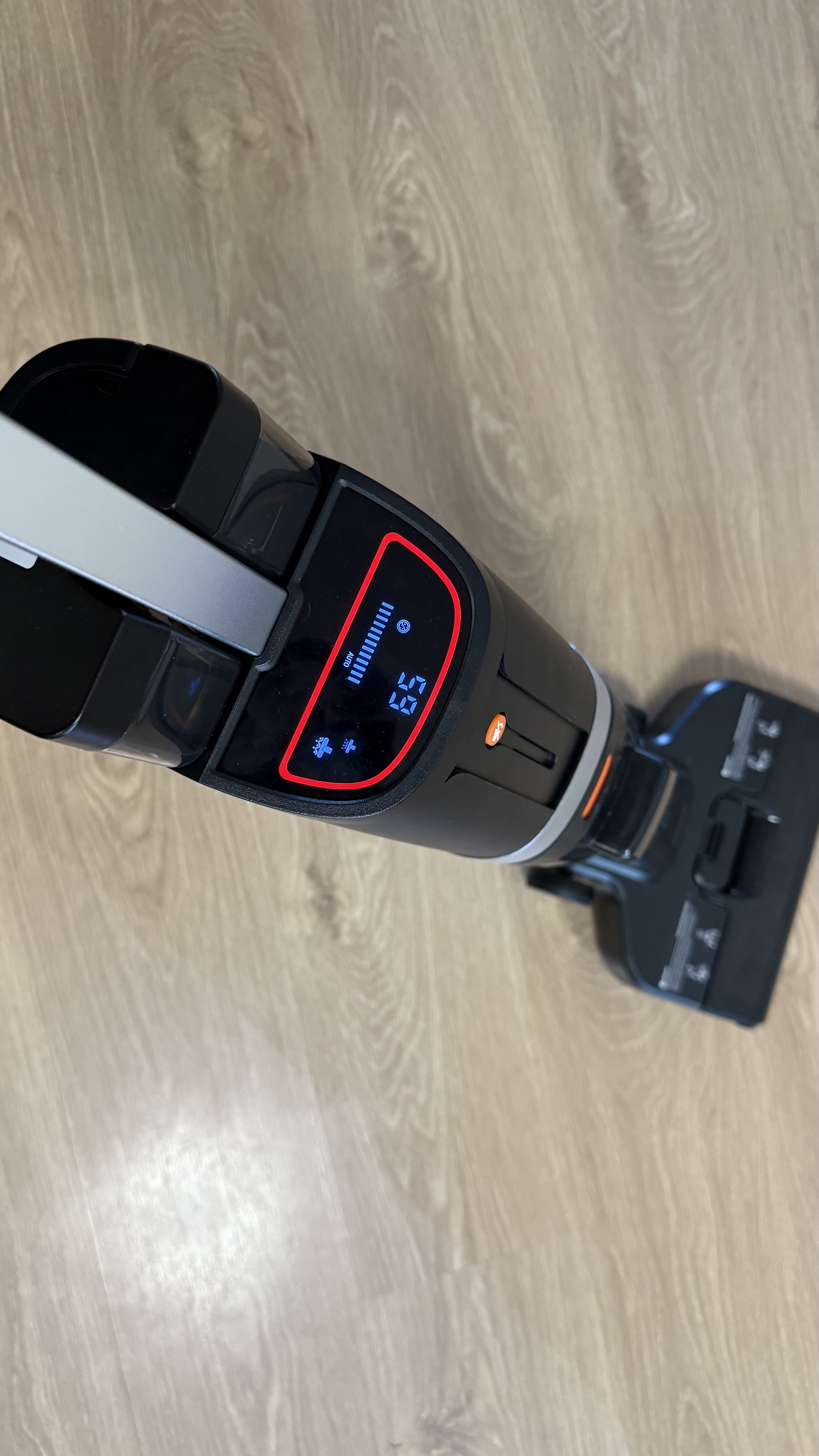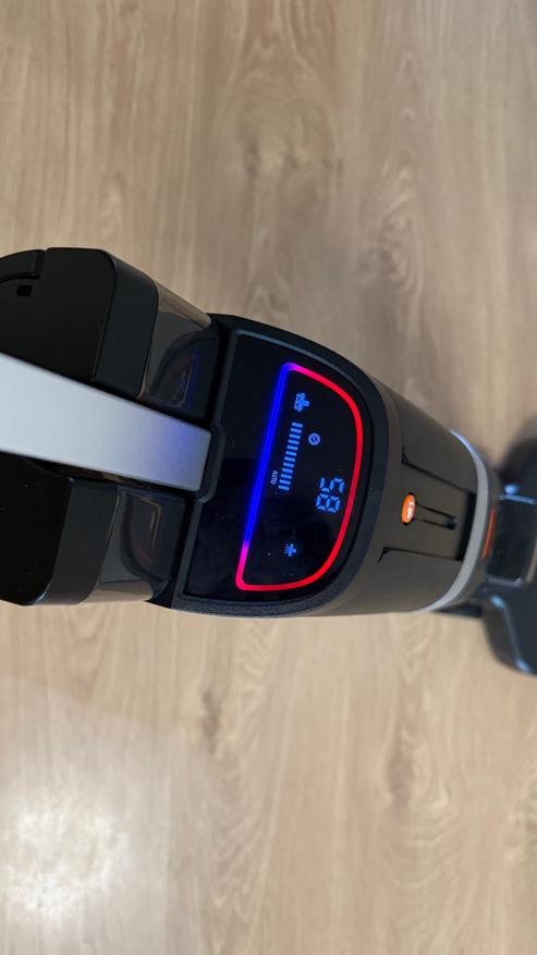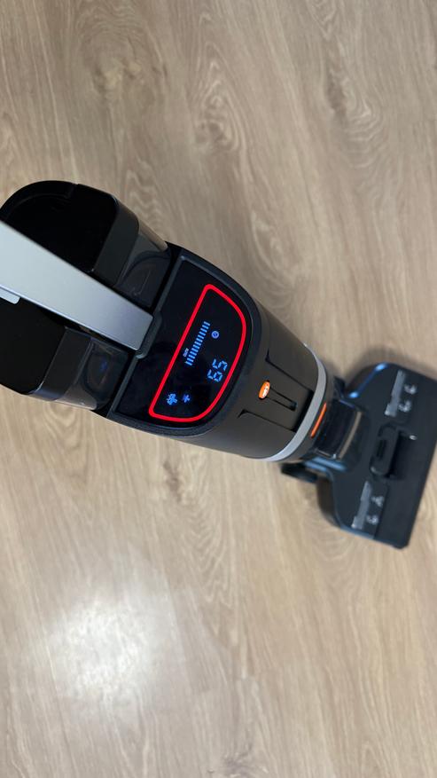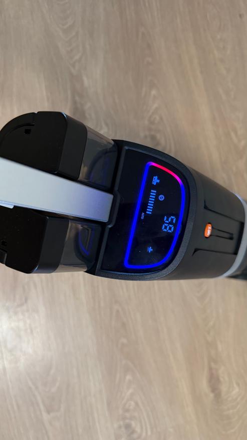 В процессе влажной уборки цифровой дисплей отображает смену цветов подсветки (красный/синий), позиционируемую как индикатор загрязнений, хотя на практике это воспринимается скорее как маркетинговая особенность.
