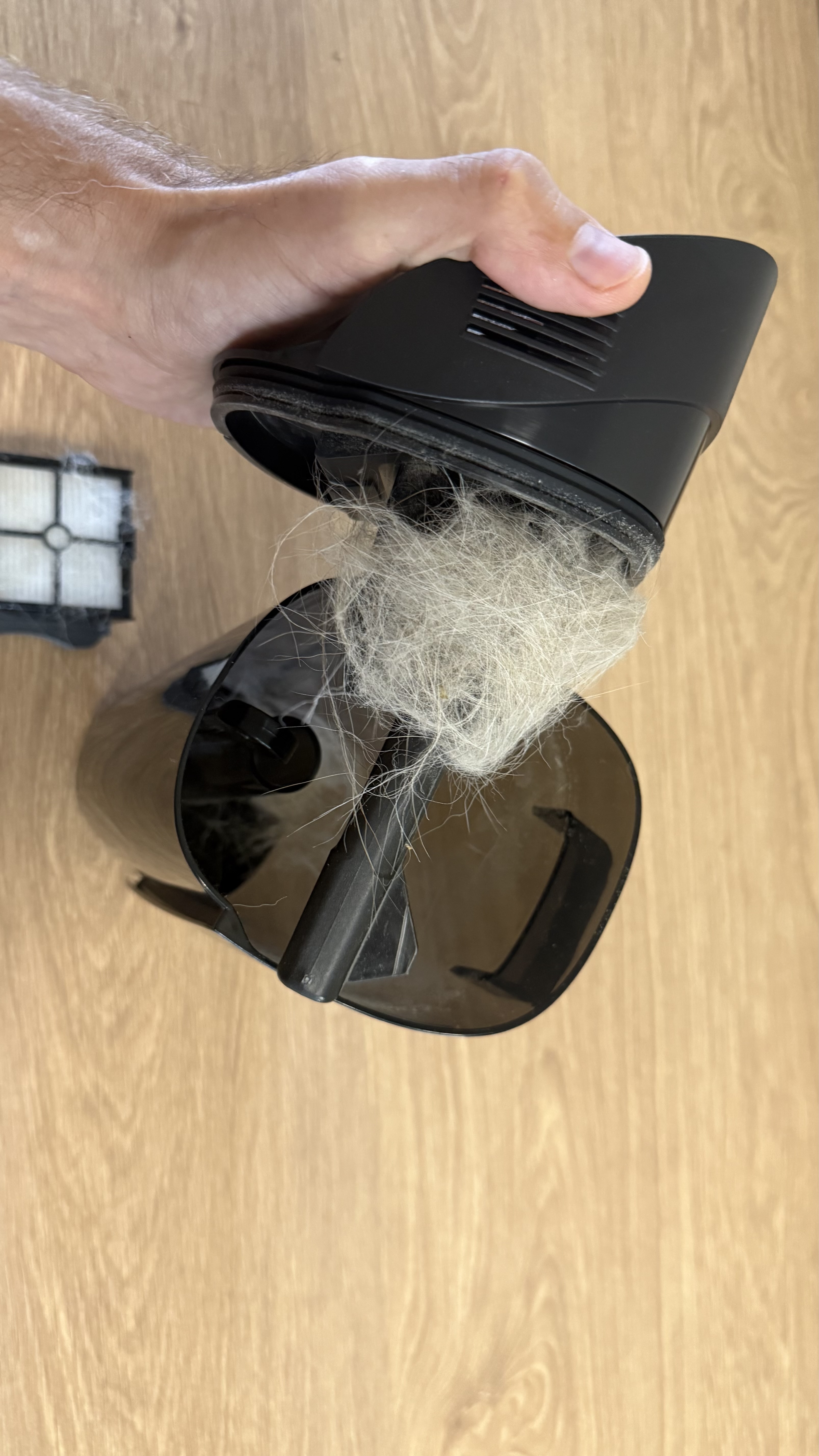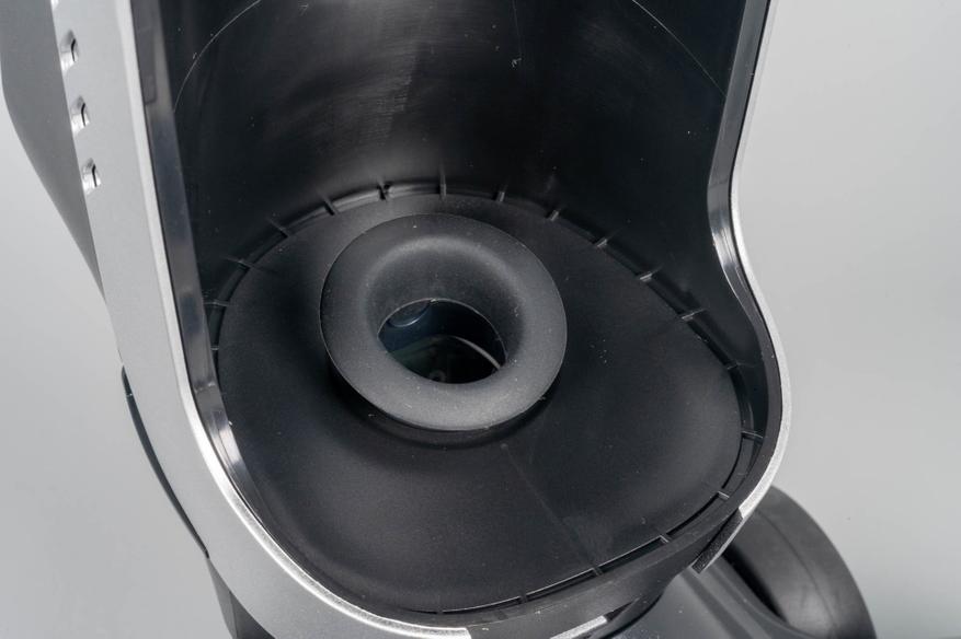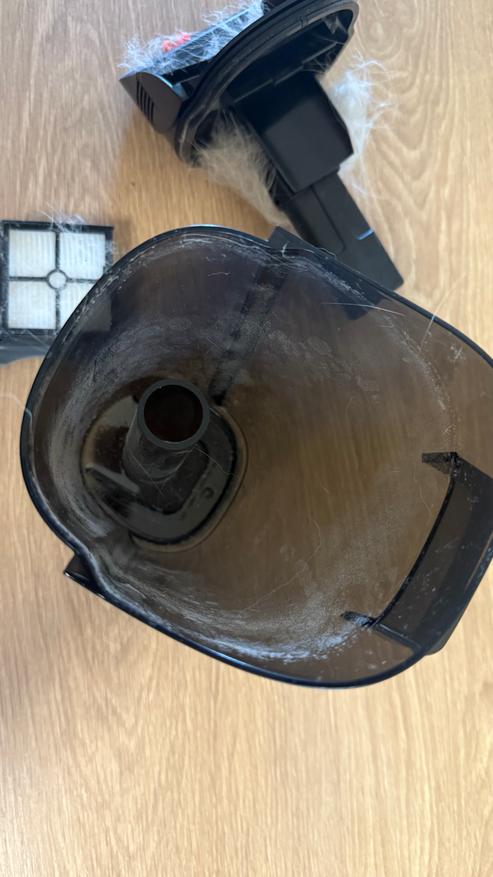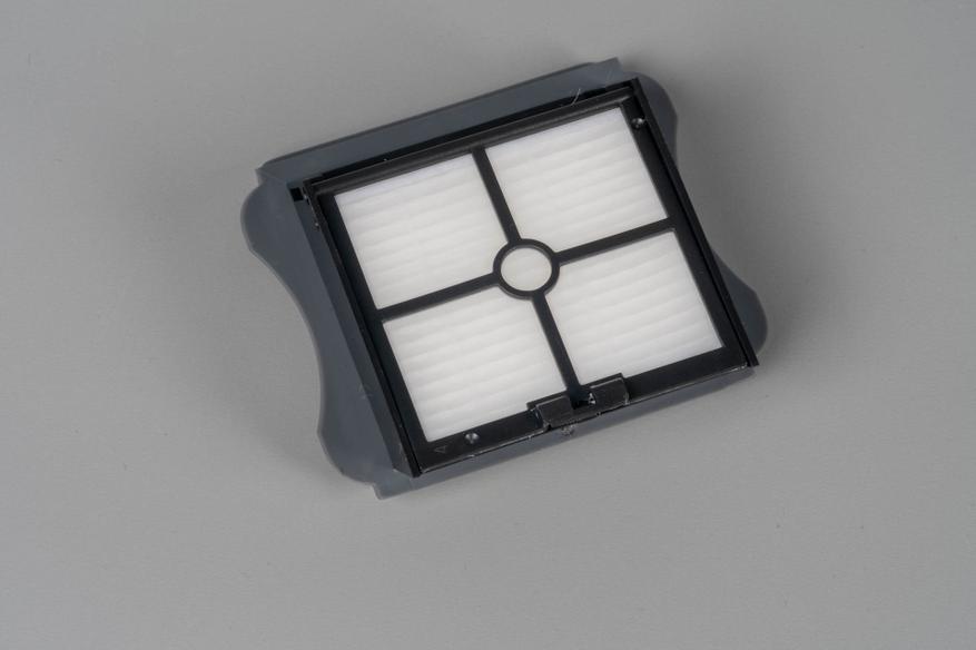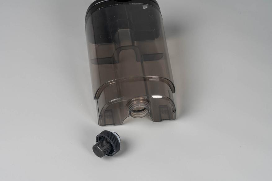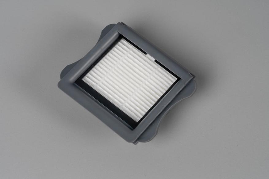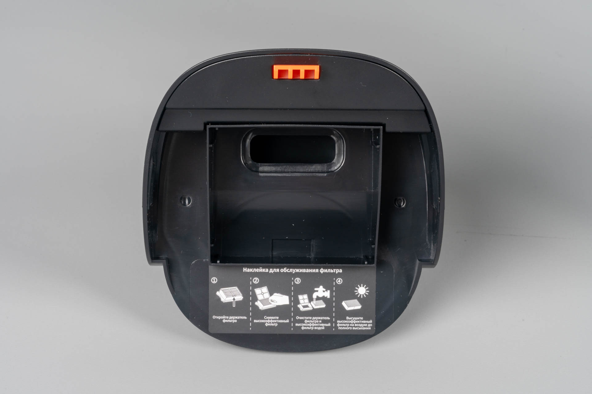 Его внутренняя конструкция включает: HEPA-фильтр с защитной сеткой, поплавковый датчик уровня жидкости и пластиковый фильтр, служащий барьером для крупных частиц мусора.