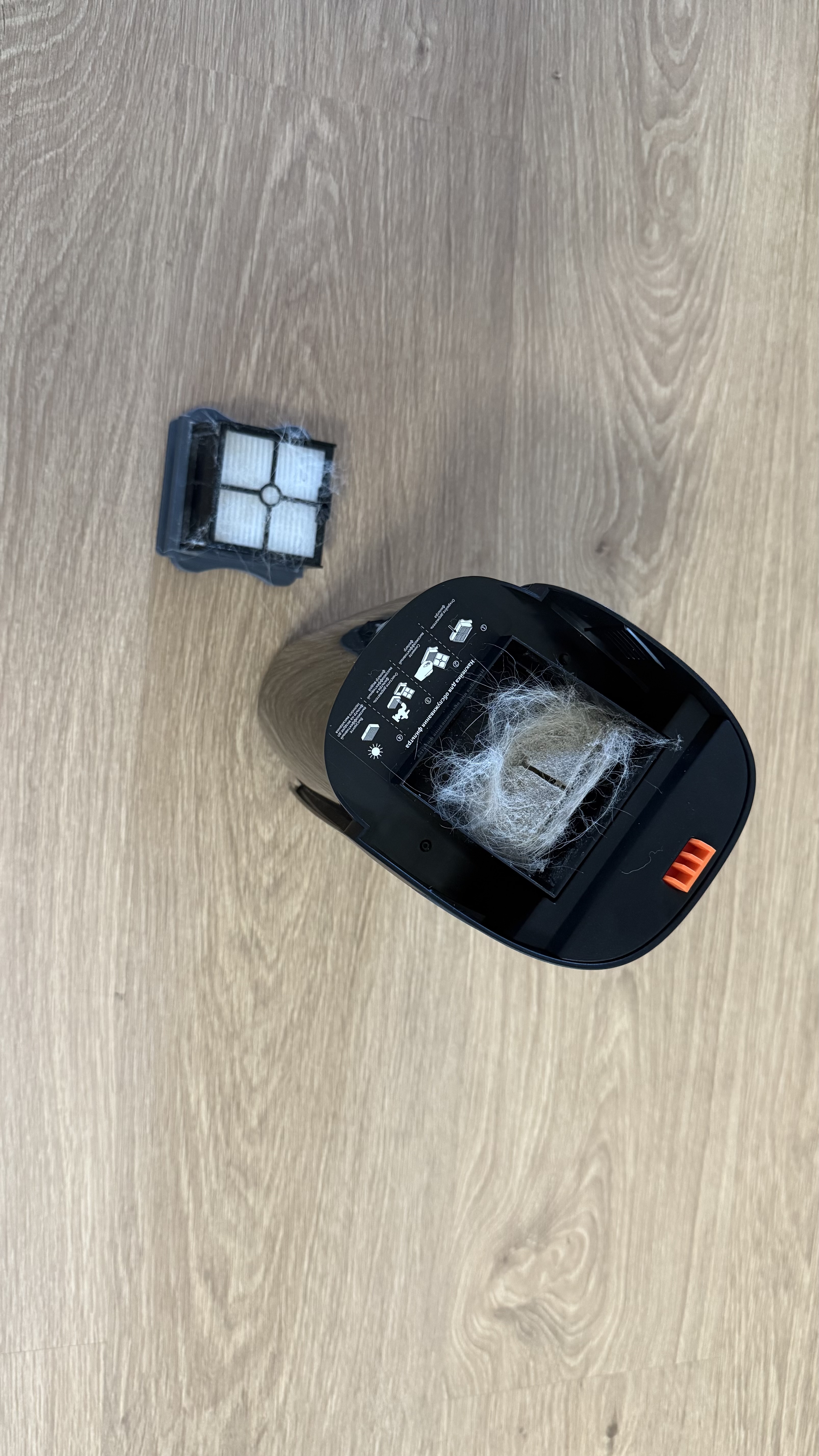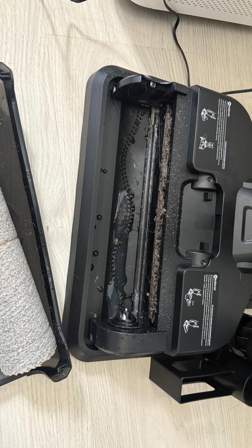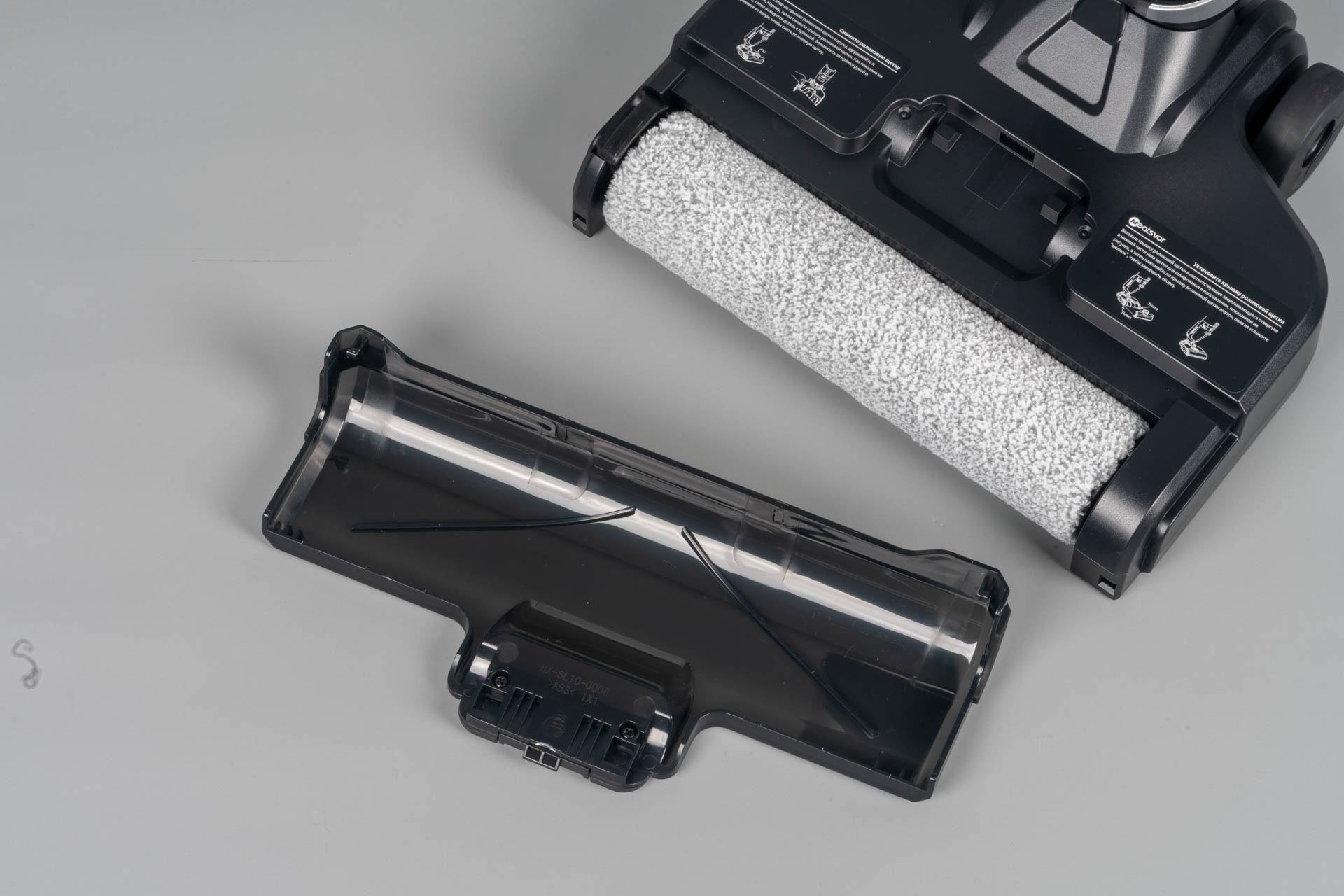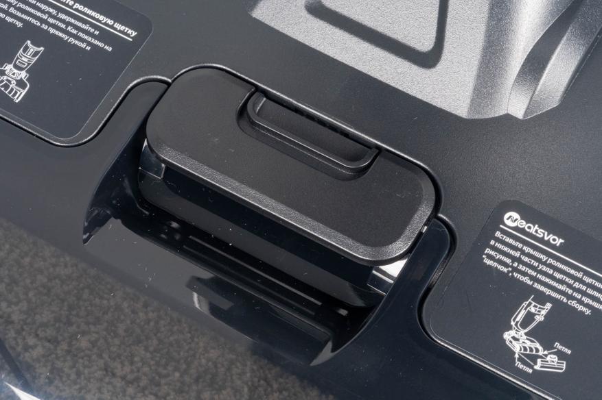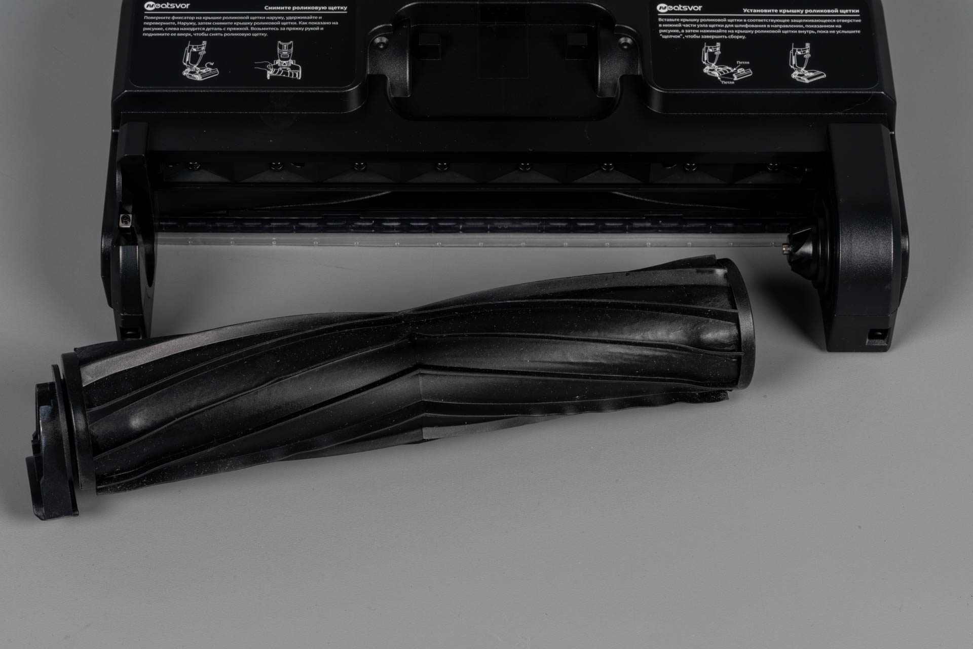 Функция самоочистки после испытаний показала, что основная рабочая поверхность (крышка и роллер) очищается эффективно. Однако за роллером наблюдаются незначительные остатки мусора после уборки. Это указывает на то, что процесс самоочистки не обеспечивает абсолютного результата, но его уровня вполне достаточно для стандартных бытовых условий эксплуатации.