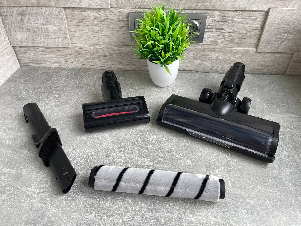 - Моторизованная насадка для пола со светодиодной подсветкой: турбо-щетка и мягкая щетка для половых покрытий