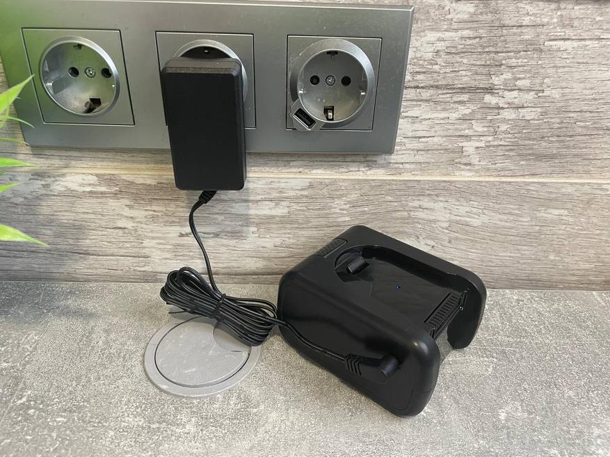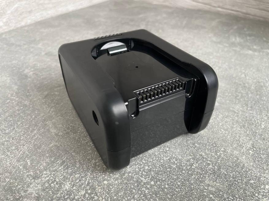 Полное восстановление аккумулятора занимает около 5 часов. Так как аккумулятор съемный, заряжать его можно двумя способами: через док-станцию с установленным пылесосом или напрямую, подключив блок к разъему на самом АКБ. Корпус основного блока питания выполнен в классической форме.