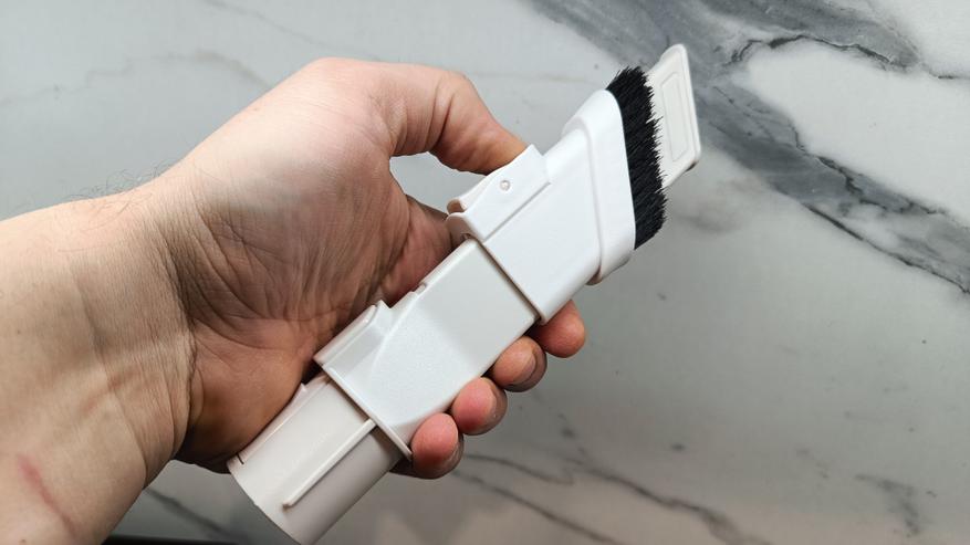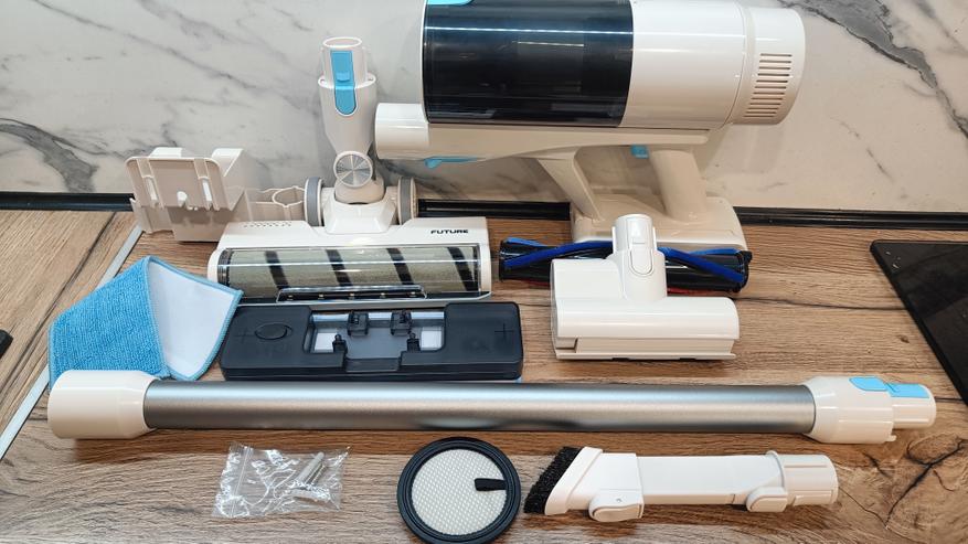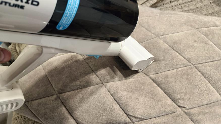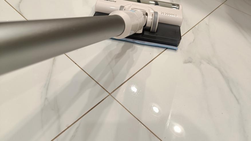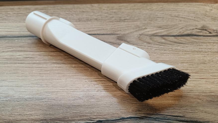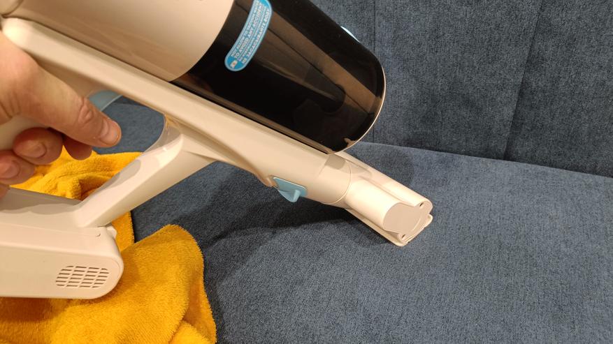 Во время тестирования пробежался по различным поверхностям по всей квартире. Кроме того, почистил ковры, мебель и в труднодоступных местах. Количества насадок достаточно для проведения полноценной уборки, в том числе и влажной. Хотя она сводится к протирке пола после уборки основной щеткой. Но все же это работает. Хотя влажную уборку я провожу лишь плитке. Функция влажной уборки позволит более углублённо очистить пол и освежить поверхность после сухой уборки. При этом нет необходимости использовать отдельную швабру. Салфетку можно с легкостью заменить и постирать в машинке.