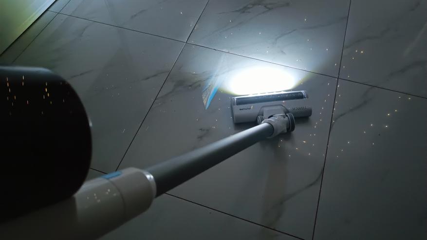 На щетке установлено сразу 5 ярких светодиодов, которые подсвечивают зону уборки. Убираться можно даже в полнейшей темноте.