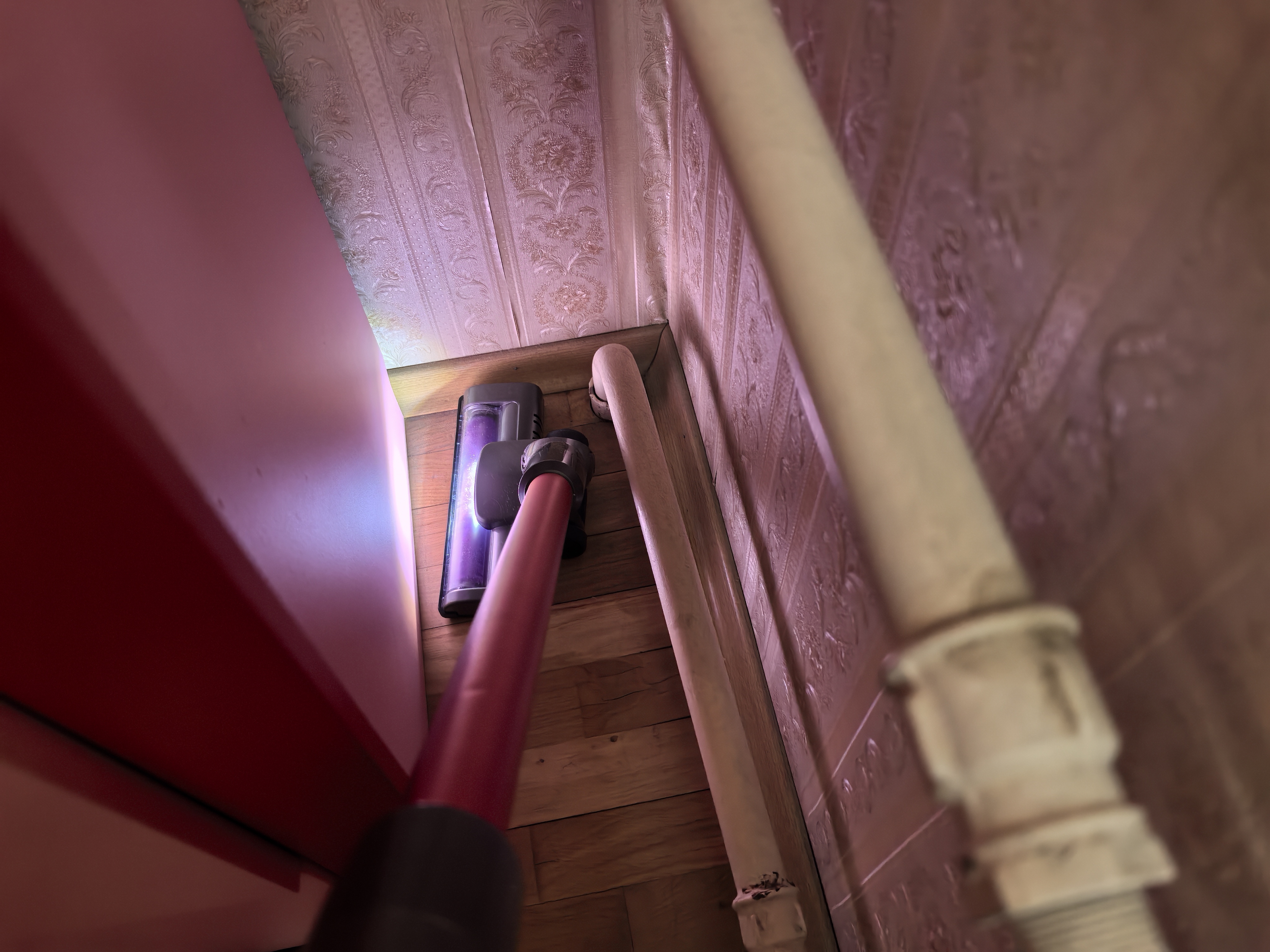 Во время работы пылесосом удобно управлять. Основная щётка крутится в разных направлениях и спокойно достает до далёких мест, благодаря длинной направляющей палке, но есть ограничение. Обидно, пылесос не смог далеко залезть под кровать. Считаю, что в условиях длинной направляющей такой расклад нежелателен, так как остаётся площадь, которая не будет убрана.