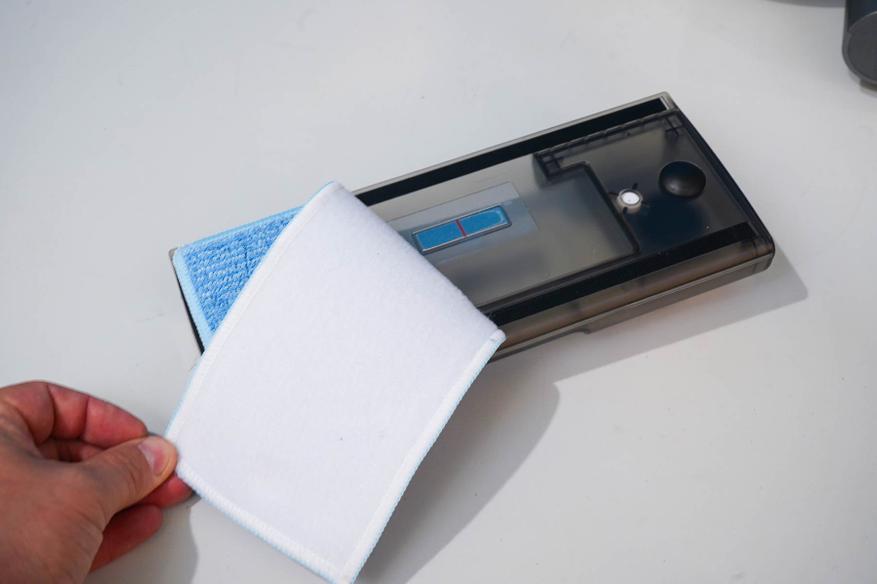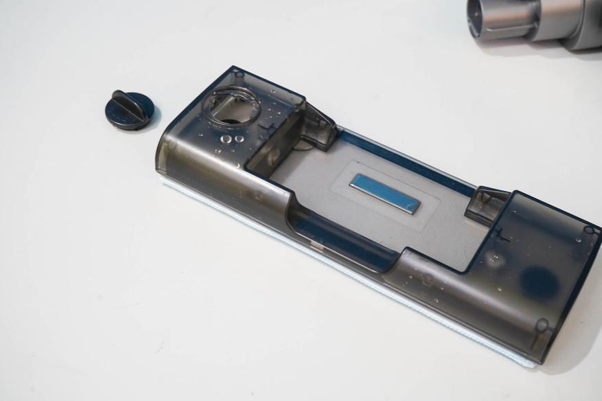 Одна из «изюминок» вертикального пылесоса Neatsvor G10 — это модуль влажной уборки, сделанный в виде съёмной конструкции, которая устанавливается непосредственно на универсальную насадку. Если вам нужно просто пропылесосить — то не устанавливаем этот модуль. Если нужно сэкономить время и протереть пыль, тогда просто при очередной уборке устанавливаем модуль влажной уборки, не забываем добавить в него воды, и проходим по комнатам. Салфетка стирает пыль, собирает на себе мелкий мусор. Потом салфетку аккуратно снимаем с липучек и отправляем в стиральную машину.