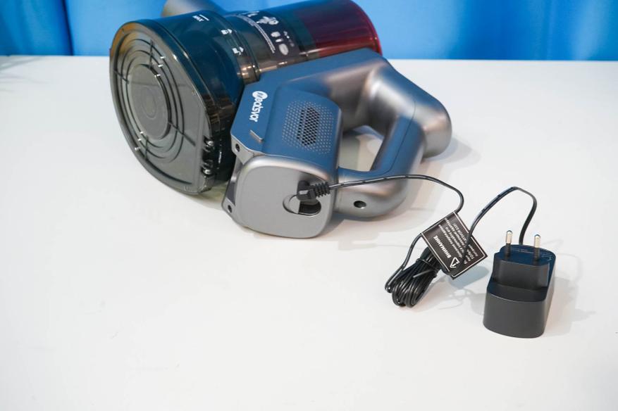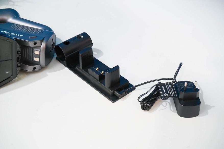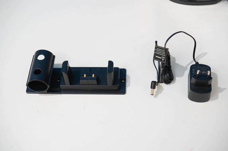 Стоит отметить, что зарядка пылесоса возможна как с прямым подключением адаптера сетевого питания к блоку, так и через контакты настенного органайзера. Одновременно органайзер позволяет закрепить пару насадок (посадочное место слева от пылесоса). Но основное предназначение органайзера — это хранение пылесоса в вертикальном положении на стене. Планирую установить это крепление на кухне рядом с розеткой, чтобы пылесос постоянно был под рукой, а также подзаряжался во время хранения.