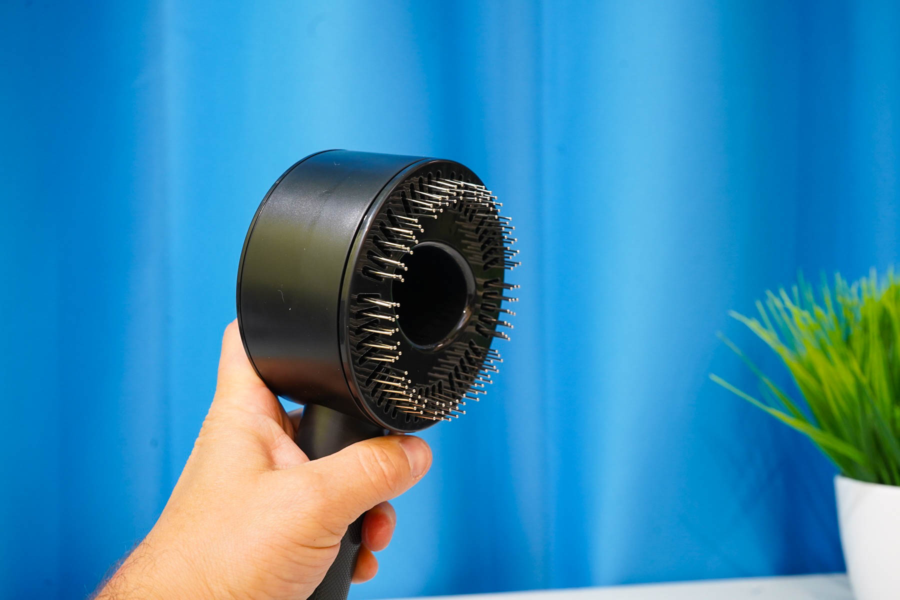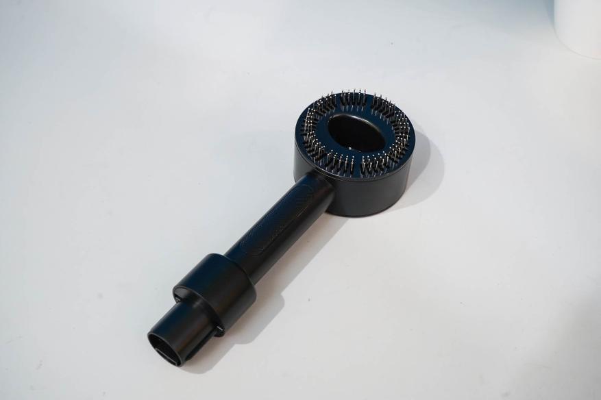 Еще один интересный момент: в комплектации вертикального пылесоса Neatsvor G10 присутствует специальная насадка-щетка, позволяющая вычесывать шерсть домашних питомцев. Отличается наличием длинных зубьев, а также механизмом сбрасывания шерсти. Просто подключаем насадку к пылесосу через гибкий шланг, прочесываем шерсть животного, а для сброса шерсти в трубку просто нажимаем на кнопку. Удобная штука, владельцы домашних питомцев с густой шерстью должны оценить по достоинству.