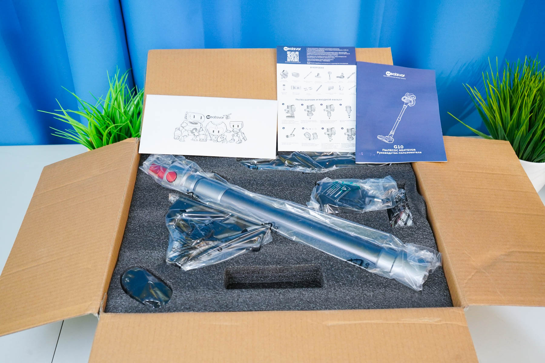 Особенностью модели Neatsvor G10 можно считать контактную систему электрических проводов, которая проходит из основного модуля пылесоса через трубку в насадки. Это позволяет работать смётывающим двигателям в насадках, приводит в движение ролики, обеспечивает питанием ультрафиолетовую и обычную подсветку насадок.