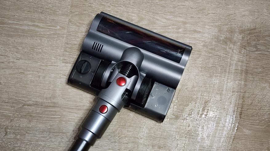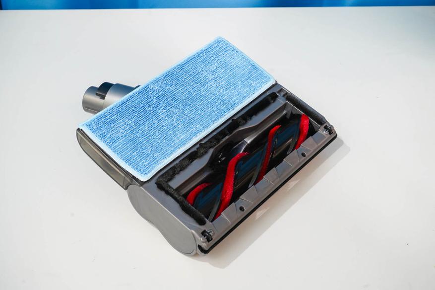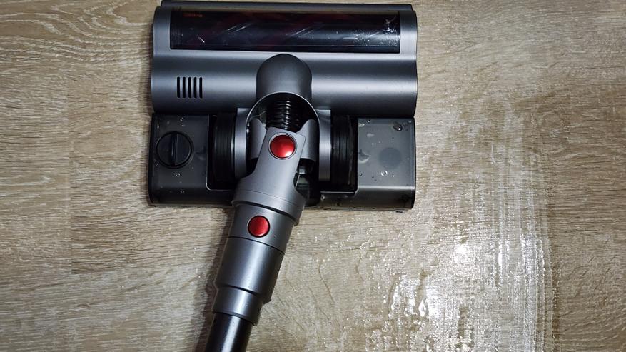 А вот с влажной уборкой оказалось интересно. Фактически, «одним махом» вы и пылесосите, и одновременно протираете пыль на полах. Конечно, если много ковров, пылесосить приходится в два этапа — сначала ковры и всякое сложное (где сдвоенная насадка не подлезет или не повернется), а потом с насадкой для влажной уборки пробежаться по твердым покрытиям — удобно протирать ламинат/плитку.