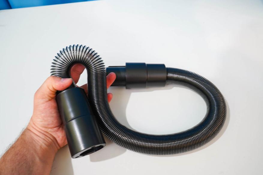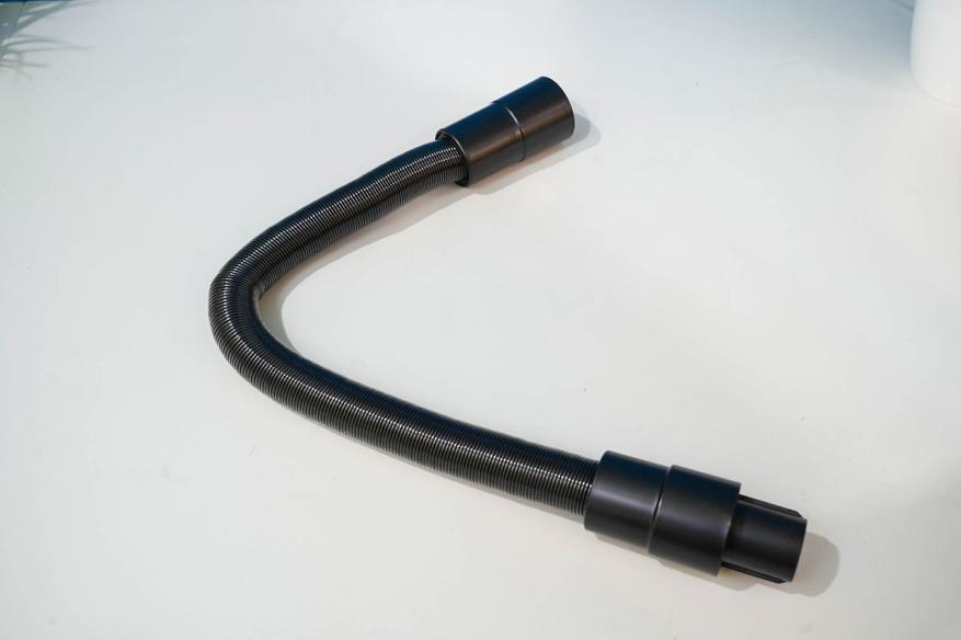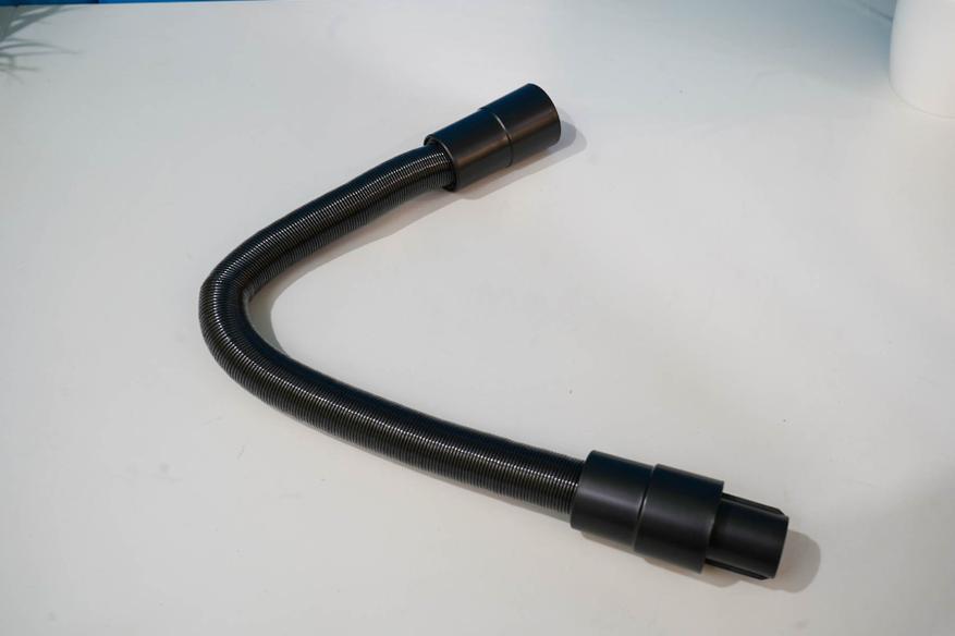 Гибкий шланг из комплекта предполагает работу в паре с насадкой для вычесывания животных, но без проблем позволяет подключать одну из ручных насадок (узкую или широкую). Такая комбинация позволяет пропылесосить там, где недостаточно трубки или не хватает длины самой насадки, или же размеры мебели не дают возможность развернуться с самим пылесосом.