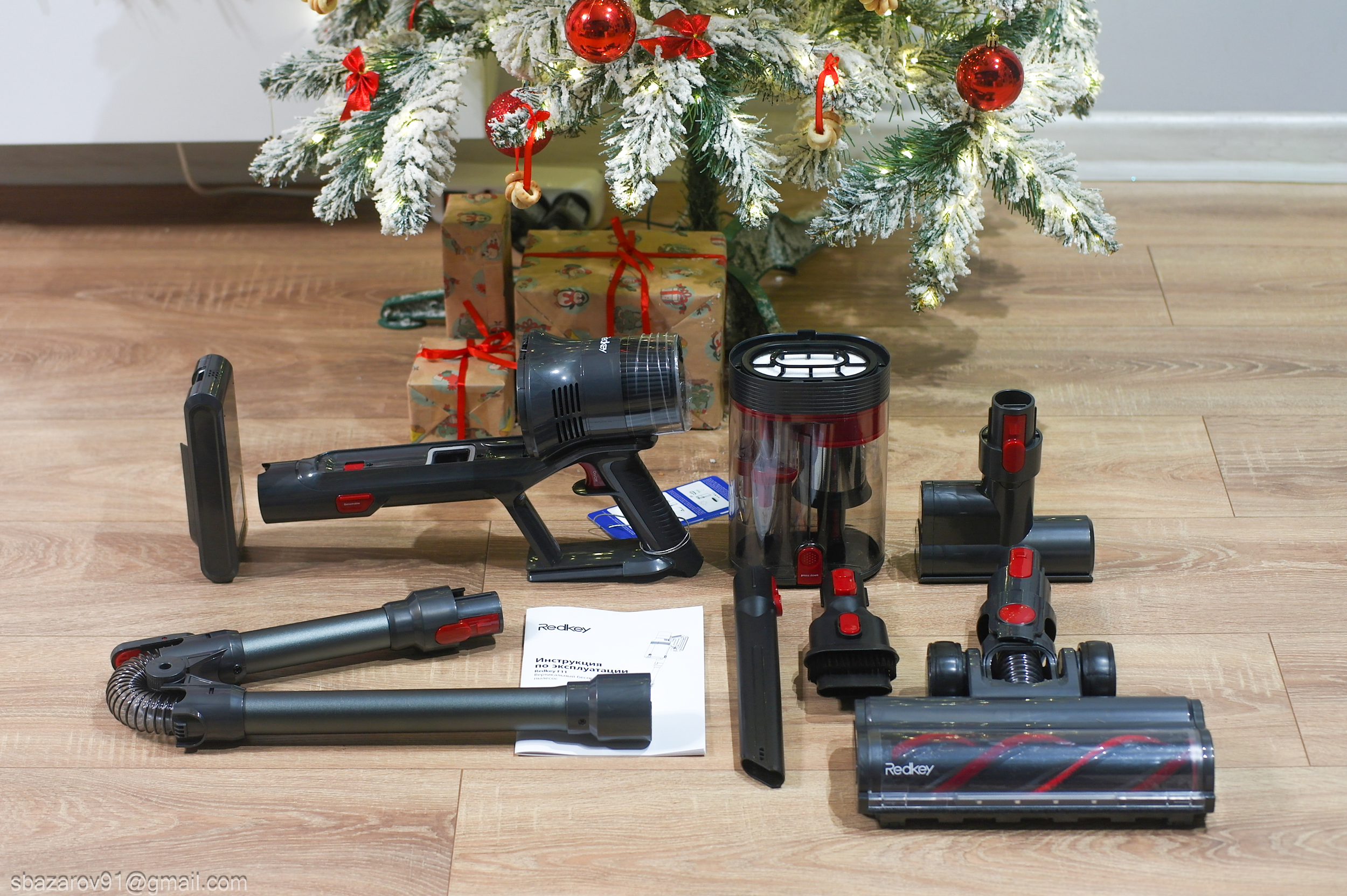 Redkey F11 — классический вертикальный пылесос с высокой силой всасывания (36 кПа), длительным временем работы (до 73 минут), богатой комплектацией (4 насадки в комплекте), сгибаемым FLEX-коленом для уборки под мебелью, встроенным датчиком пыли и зеленой подсветкой, а также с официальной гарантией. При всем этом, Redkey F11 остается довольно доступным предложением на рынке, которое не ударит по карману. Что ж, давайте посмотрим, из чего он состоит.