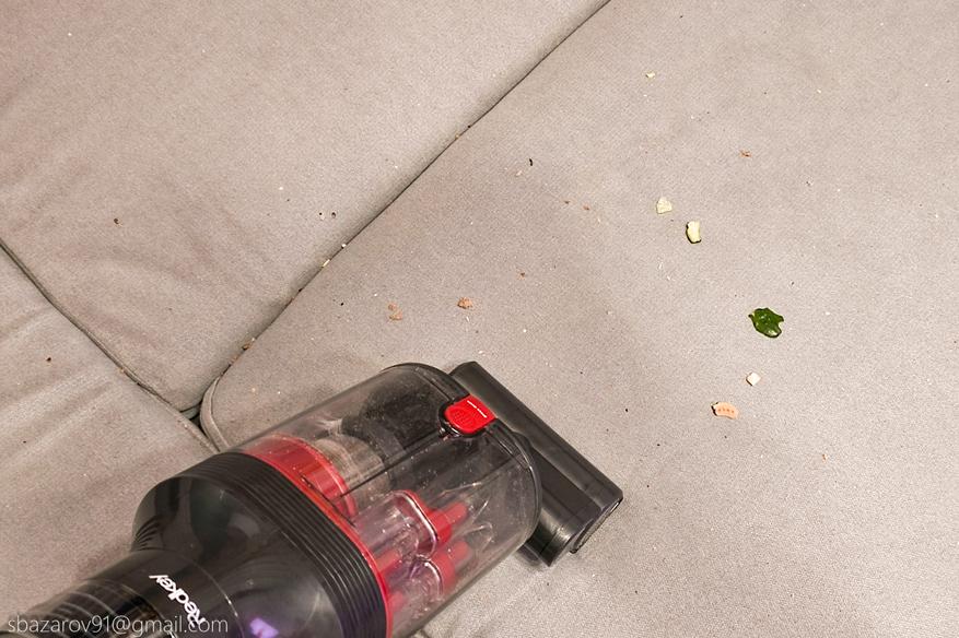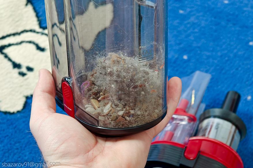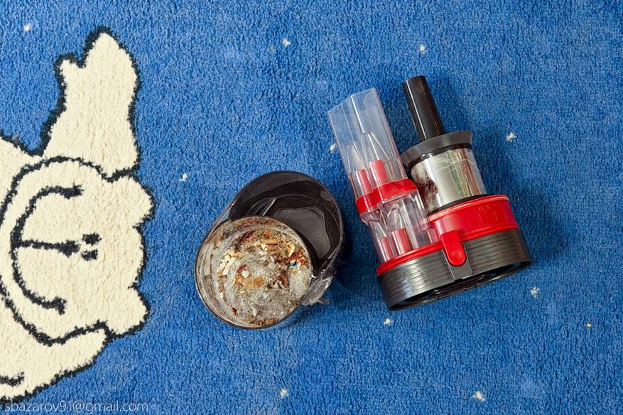 По результатам теста, Redkey F11 легко справляется со сбором мусора даже с заполненным контейнером, отделяя мусор от циклонной камеры.