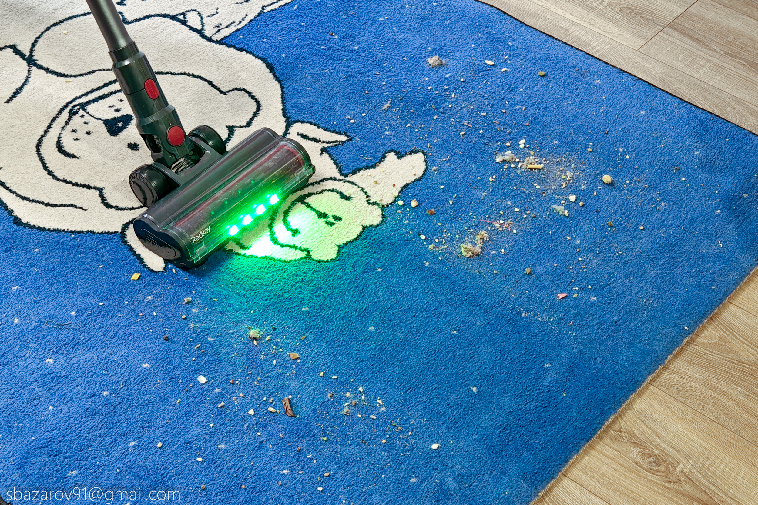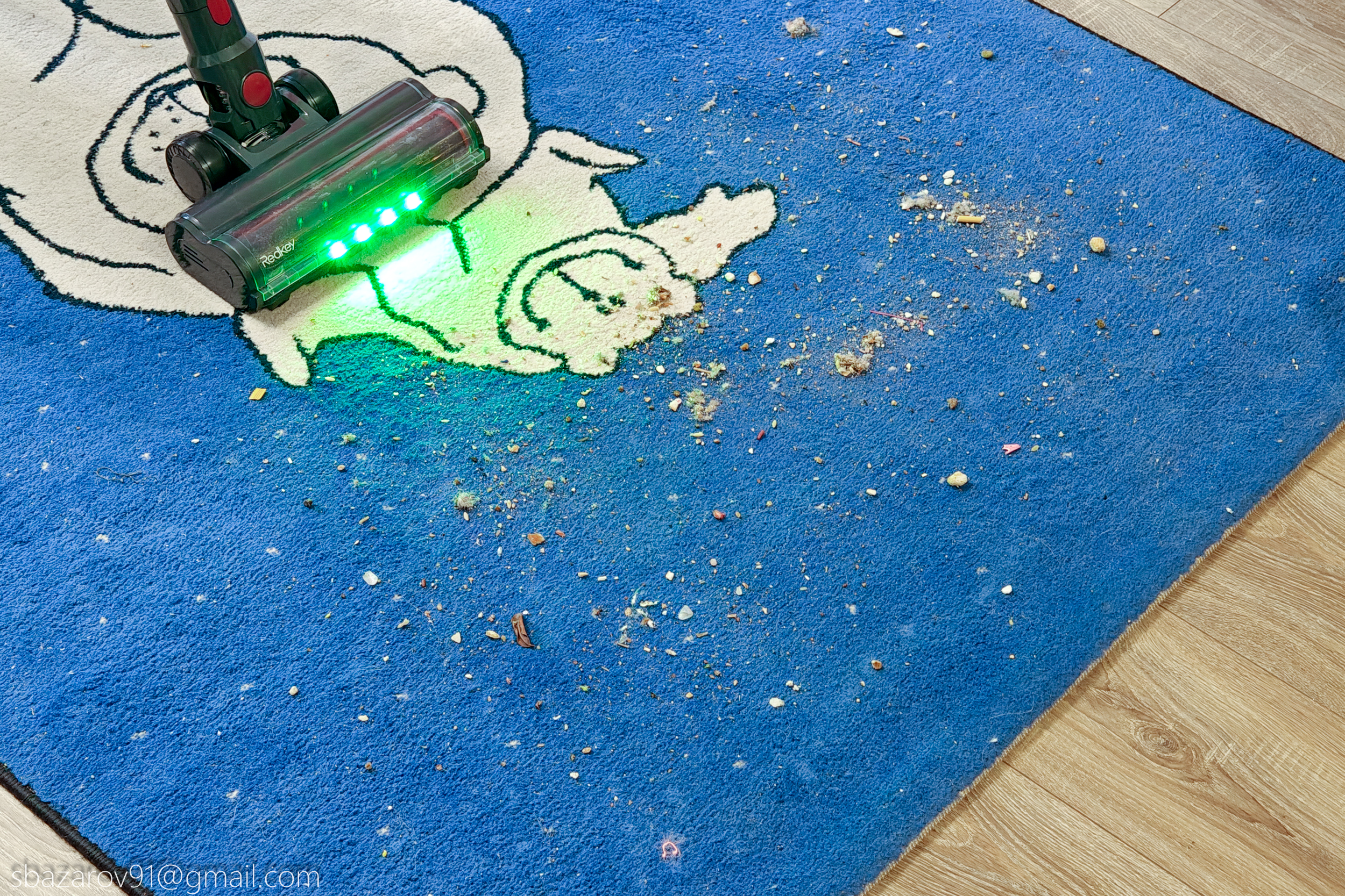 Как мы уже поняли из теста ранее, мощности электромотора на 500 Вт достаточно для сбора мусора на ковровом покрытии даже на минимальной мощности. Поэтому проблем со сбором мусора на гладких покрытиях (паркет, плитка, мрамор, кварц-винил) не будет. Однако наиболее интересной становится возможность сбора мусора вдоль плинтуса, так как не все напольные щетки способны их захватывать. По результатам тестов Redkey F11 справился практически на отлично, оставив после себя 7 зерен риса.